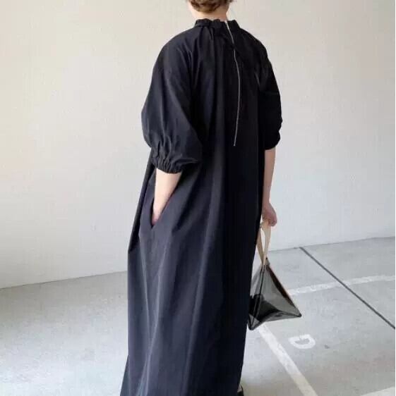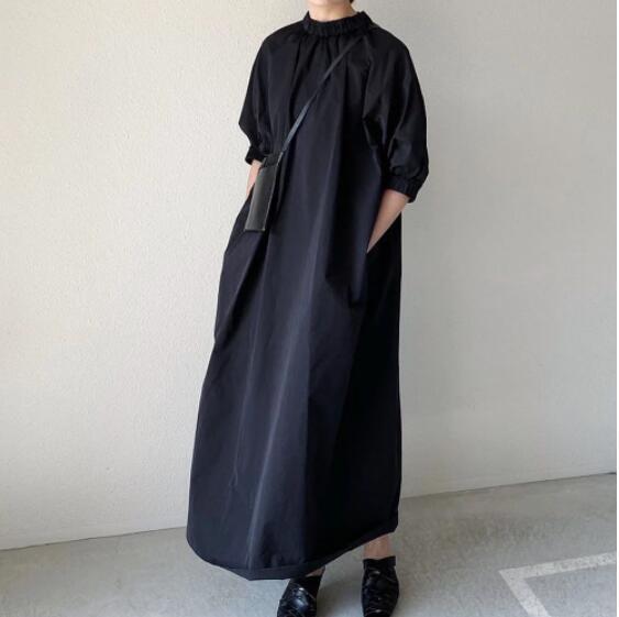 クロスボーダー ese ドレス 22 夏の新しい女性の無地スタンドカラースカート緩い気質 A ラインスカートミドル丈スカート サマー 夏物 Aライン ソリッドカラー cat834744522159