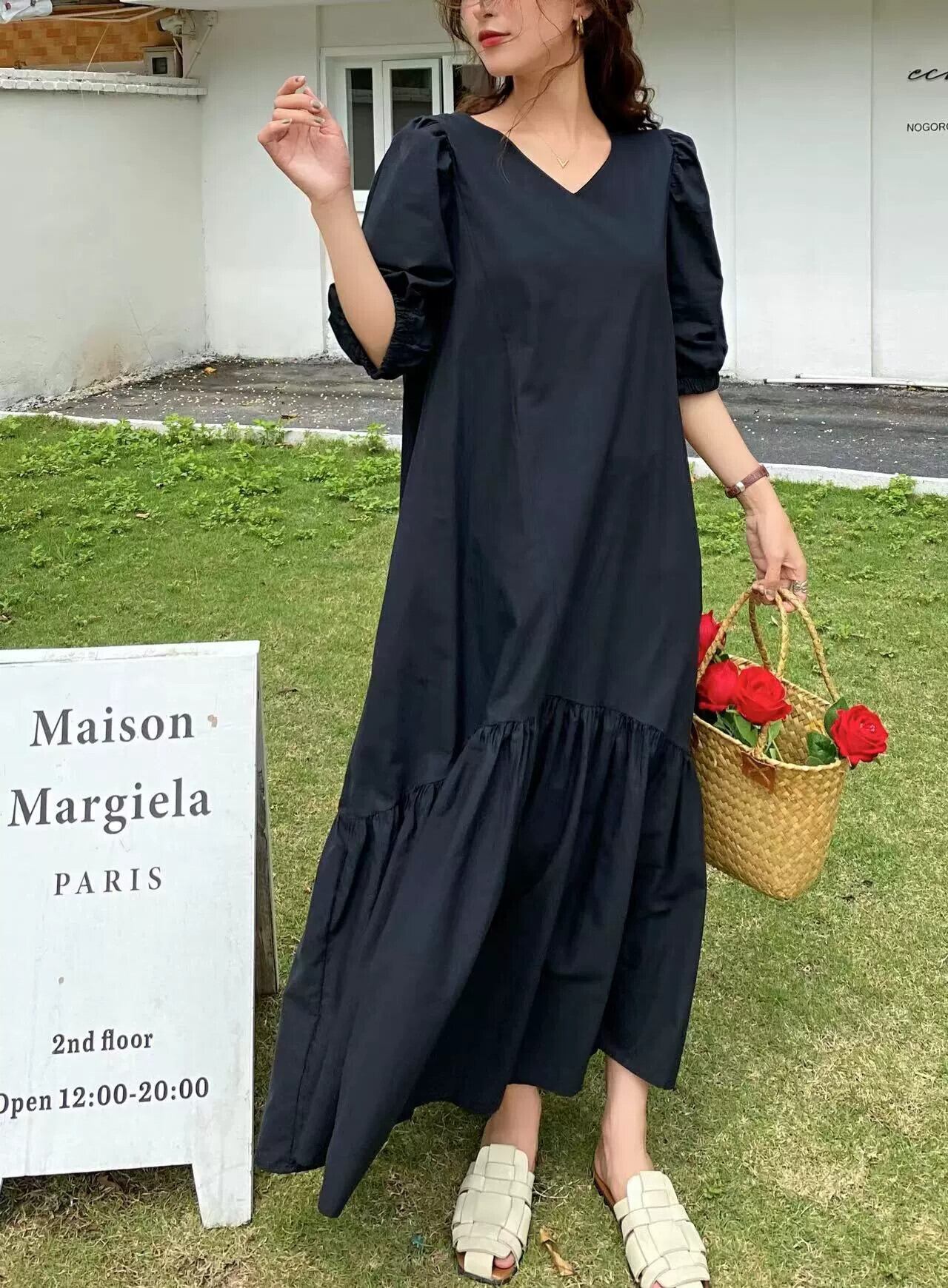 越境eign tradeスタイル怠惰な寒風ロングスカート2022夏ゆったりシンプル森エセVネックAラインドレス サマー 夏物 cat824185355969