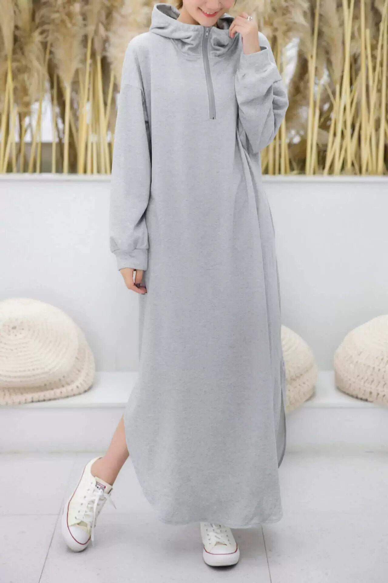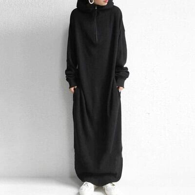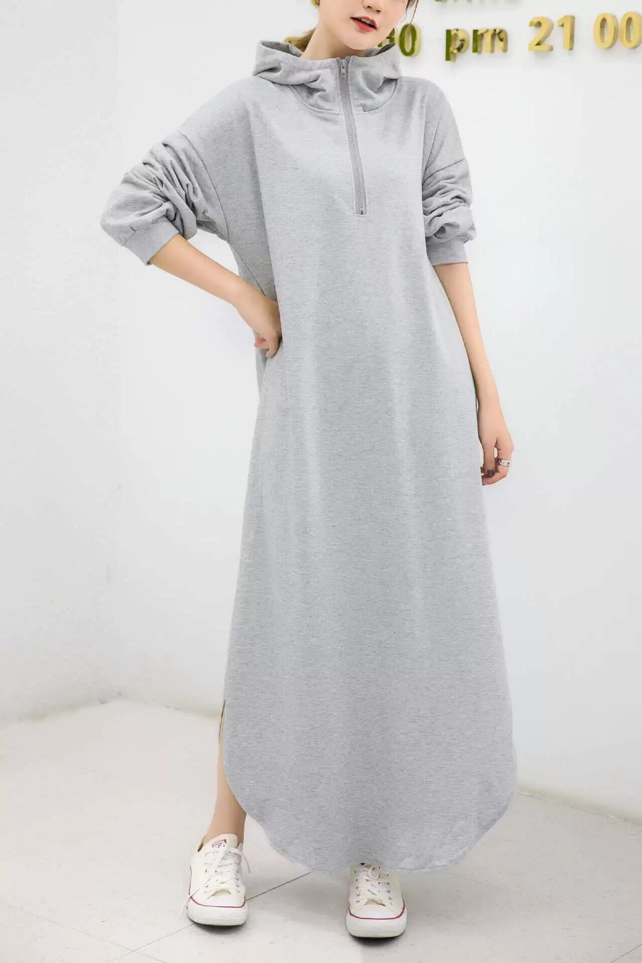クロスボーダー ese 初秋の新しいフード付きジッパーセータードレス女性のカジュアルファッションスリットミッドレングス膝上ドレス オータム 秋物 cat824082894095