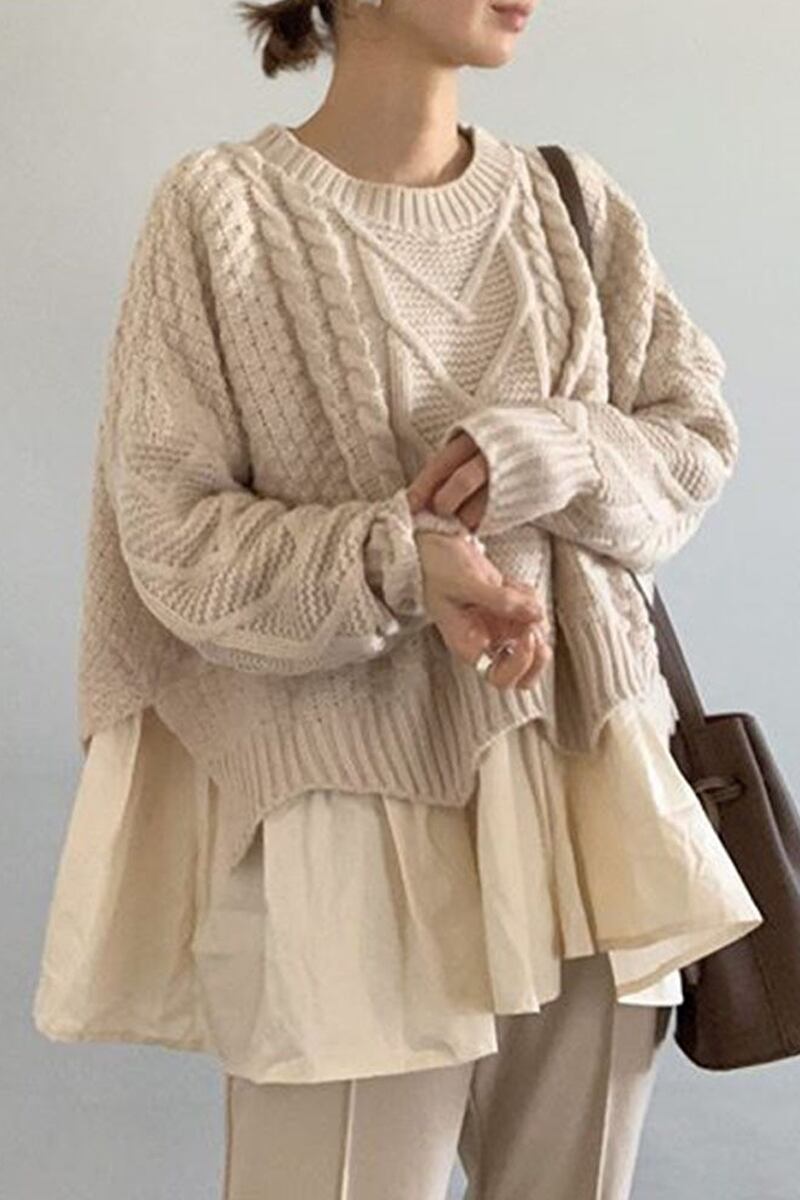 クロスボーダー ese ニットセーター女性の秋と冬の新しいスタイルの女性のファッションスプライシングフェイク 2 ピースルーズコートセーター オータム 秋物 ウィンター 冬物 cat87876876921