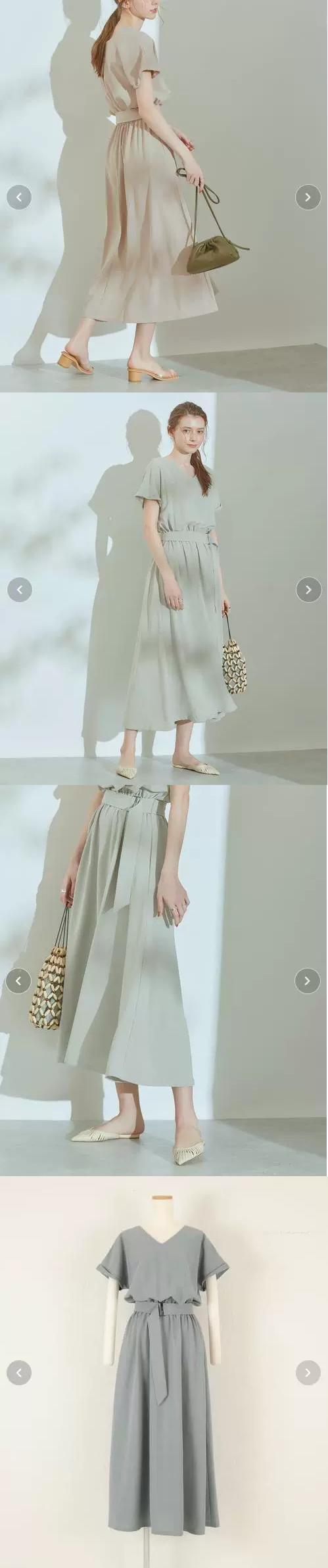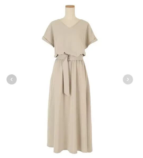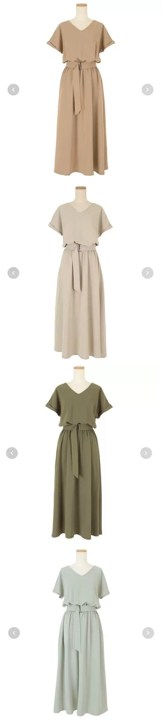 越境と夏の新しいシンプルな気質Vネックファッション半袖無地ベルトウエストミドル丈ドレス サマー 夏物 ハーネス ソリッドカラー cat837390249307