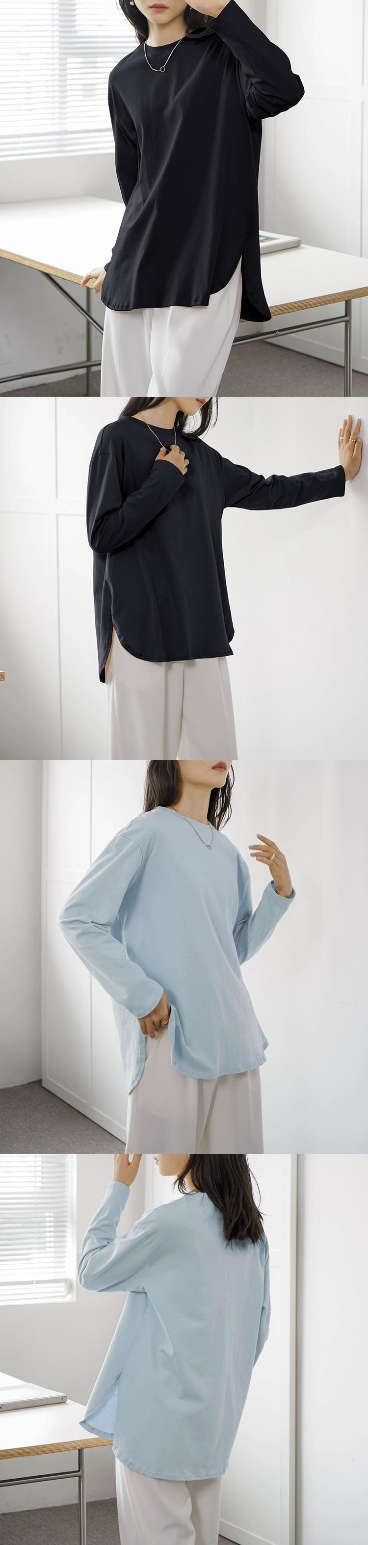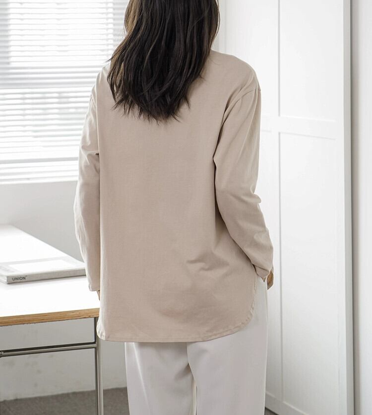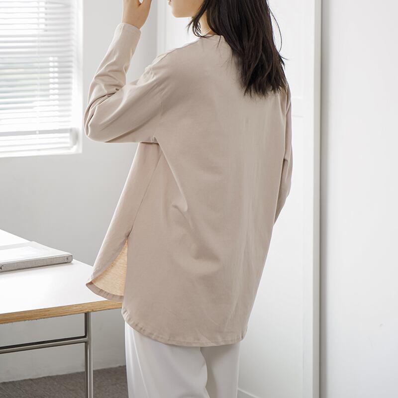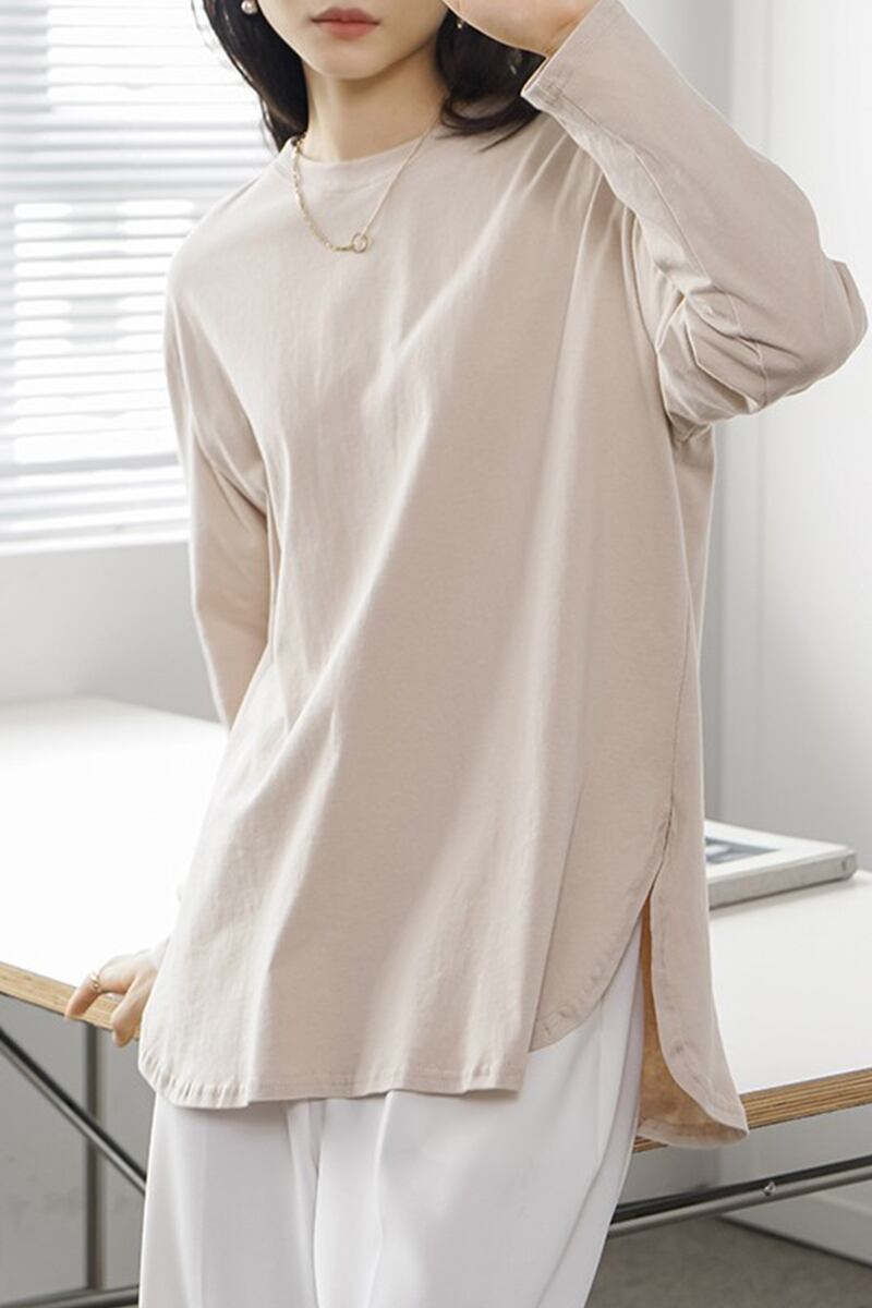 本物の春と秋のレディース長袖ボトムTシャツミッドレングスルーズソリッドカラーインナートップアウターウェア新しいスタイル ロング スプリング 春物 オータム 秋物 cat835280430488