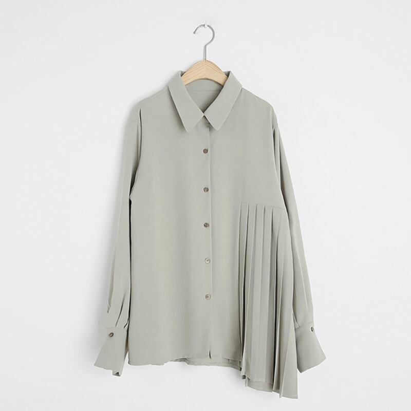 国境を越えた貿易と南、秋冬の新作レディースシャツ、ゆったりとしたデザイン、サイドプリーツ、不規則な長袖シャツ ロング オータム 秋物 ウィンター 冬物 cat845639114331
