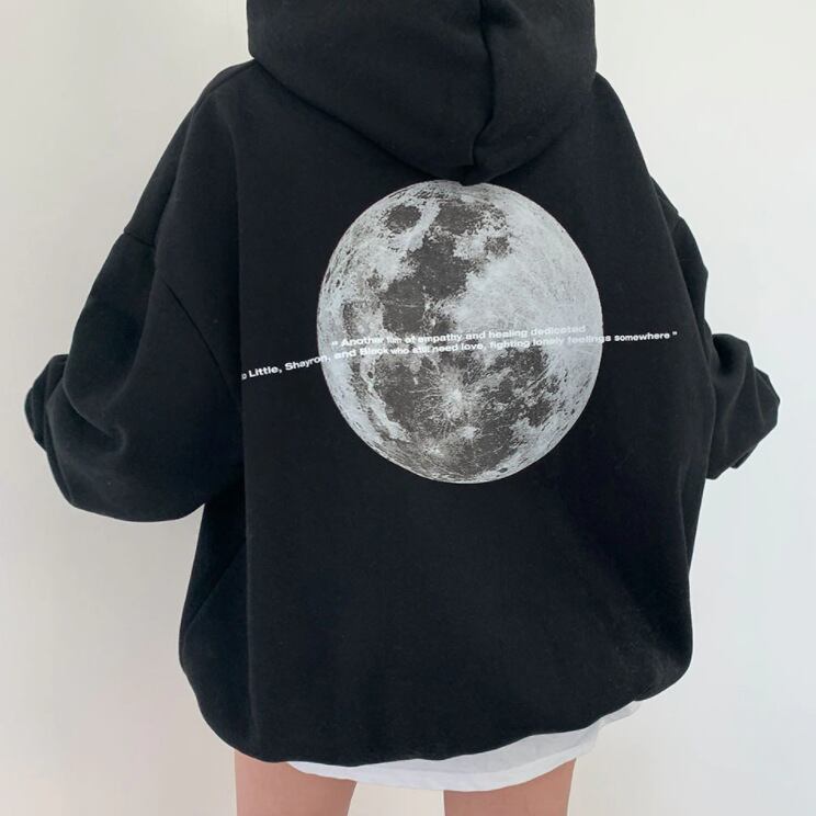 クロスボーダー ese レトロフード付きセーター黒ベルベットなし秋と冬の新しい長袖プリント気質カジュアルトップ女性 ロング ブラック オータム 秋物 ウィンター 冬物 cat822147996840