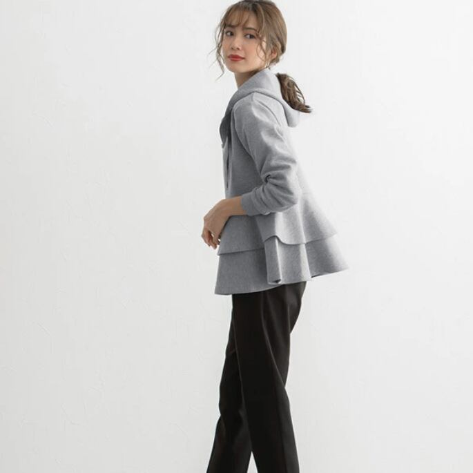クロスボーダー ese スタイル 2022 秋緩い甘いフリルセーターカーディガン長袖ジッパーフード付きジャケットトップ女性 ロング 大人ガーリー スウィート キュート カジュアル オータム 秋物 cat888460714970