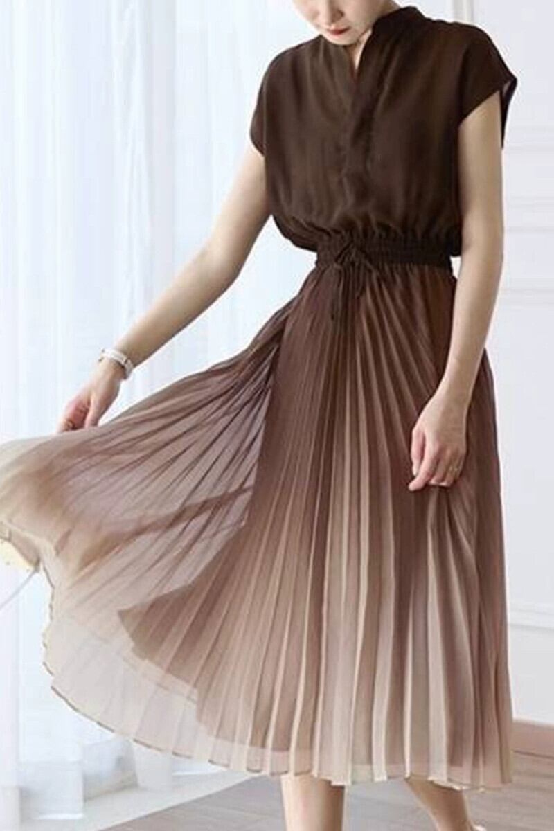 クロスボーダー ese 2022 夏の新しい気質エレガントなプリーツグラデーション痩身ネクタイ弾性ウエストシフォンドレス エラスティック 伸縮 サマー 夏物 cat885184840523