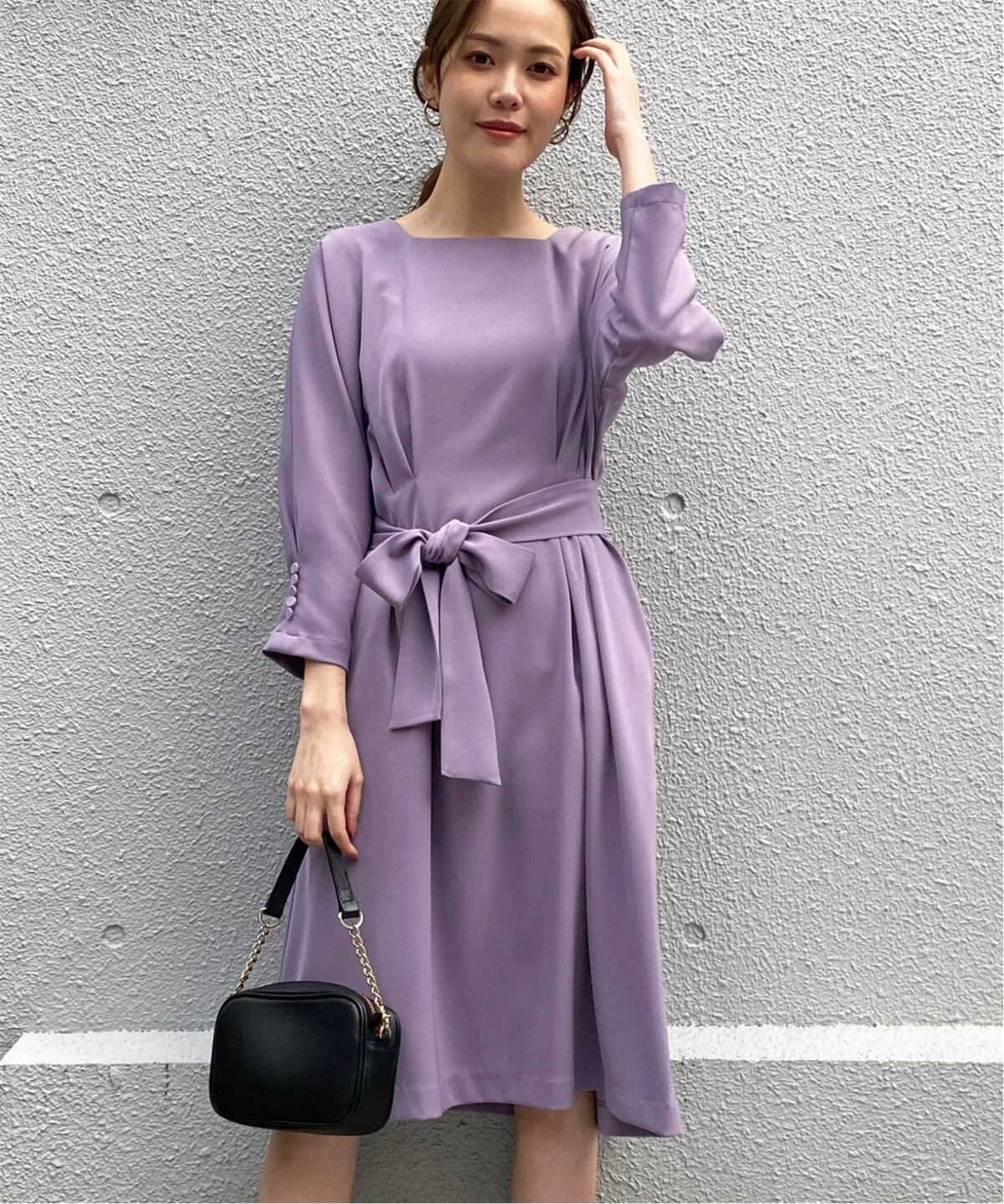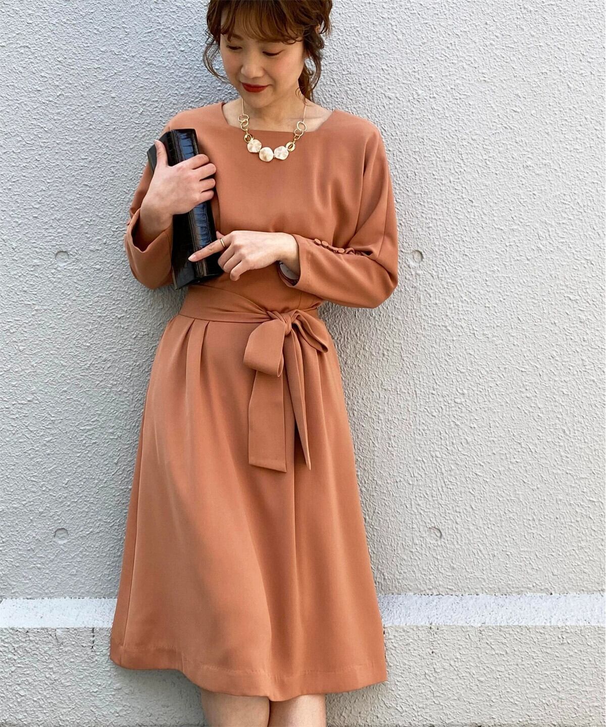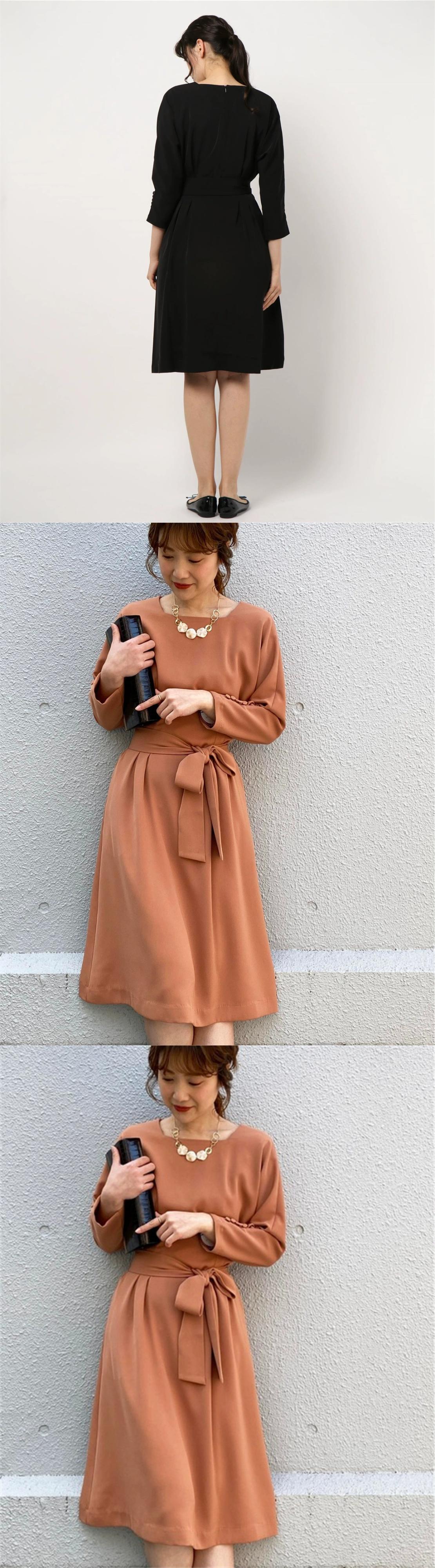 シンプルなデザインセンスのドレスの女性 2022 秋 ese スタイルラウンドネックネクタイ新ファッションウエスト痩身ミッドレングススカート オータム 秋物 Oネック cat867916848568