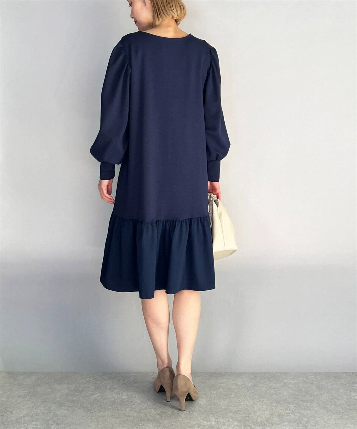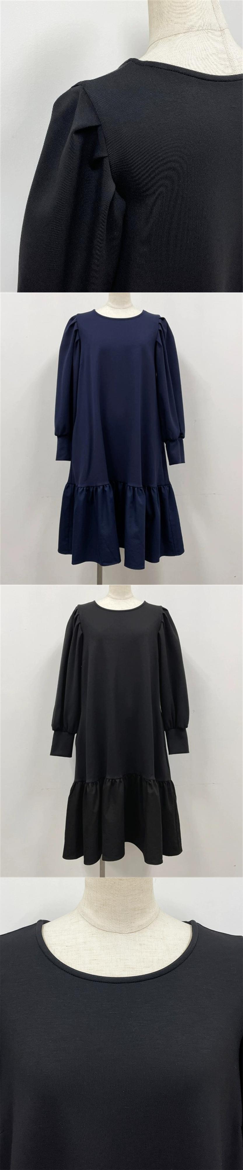 クロスボーダー秋の新作フレンチレトロラウンドネックバブル長袖ステッチルーズバットスリーブロングドレス オータム 秋物 Oネック cat884096769804