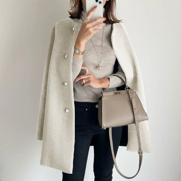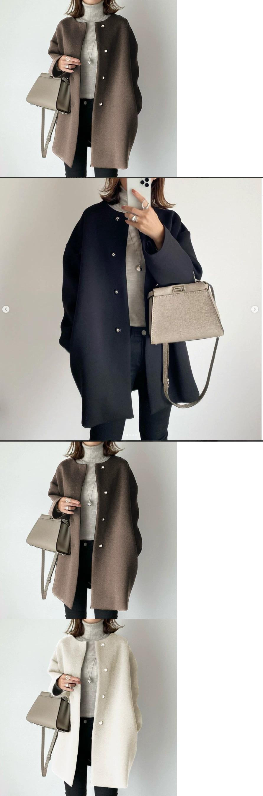 スポット越境エセ風秋冬レディース新作通勤ストレートカーディガンラウンドネックウールコートミドル丈コート オータム 秋物 ウィンター 冬物 Oネック cat846795146082