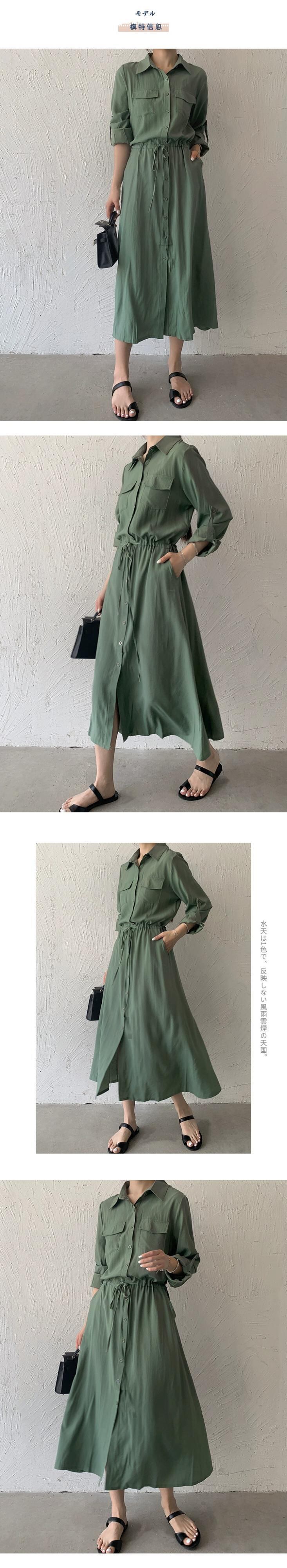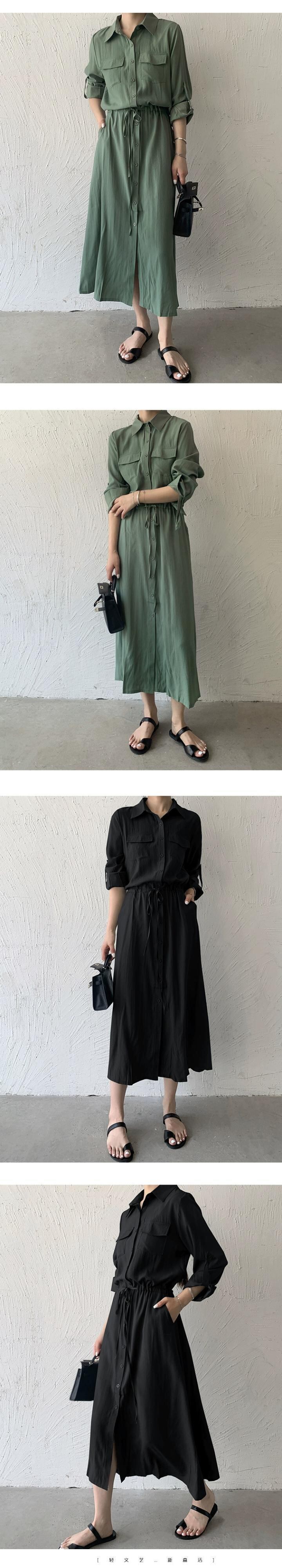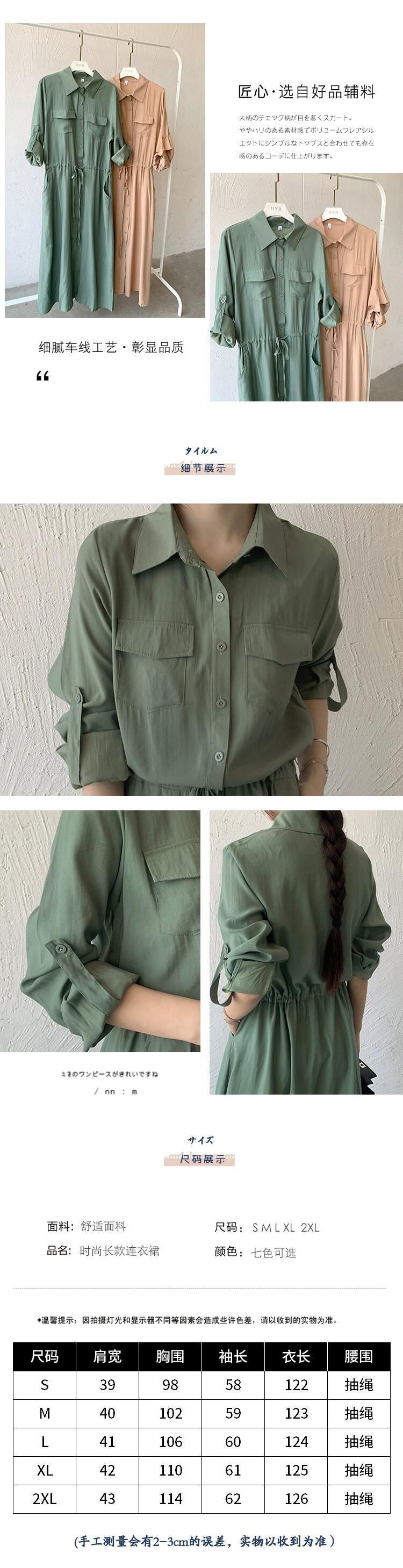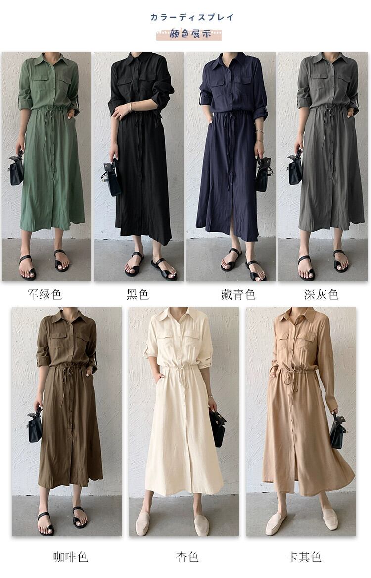 越境eign貿易秋の新しいeseスタイルのポケット長袖ミッドレングスシャツスカート気質カジュアルラペルドレス女性 ロング オータム 秋物 cat82083776255