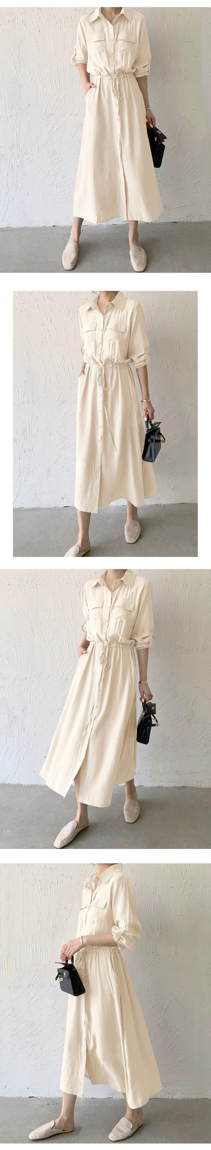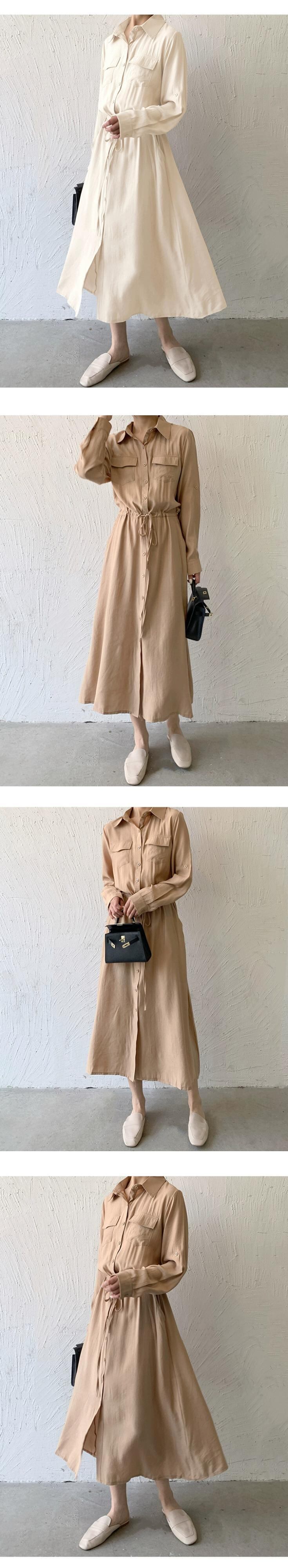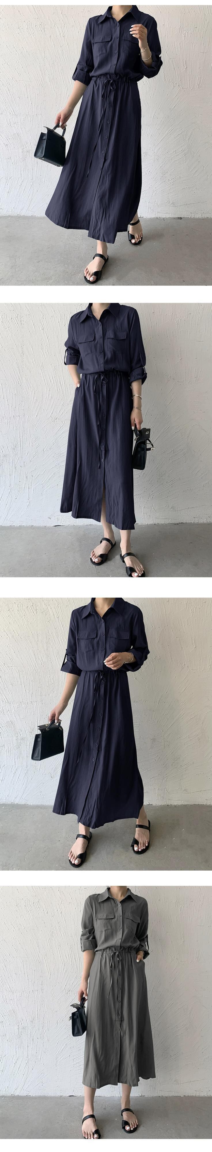 越境eign貿易秋の新しいeseスタイルのポケット長袖ミッドレングスシャツスカート気質カジュアルラペルドレス女性 ロング オータム 秋物 cat82083776255