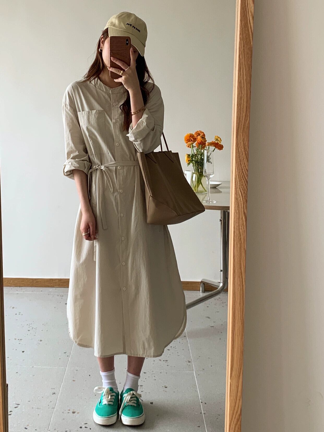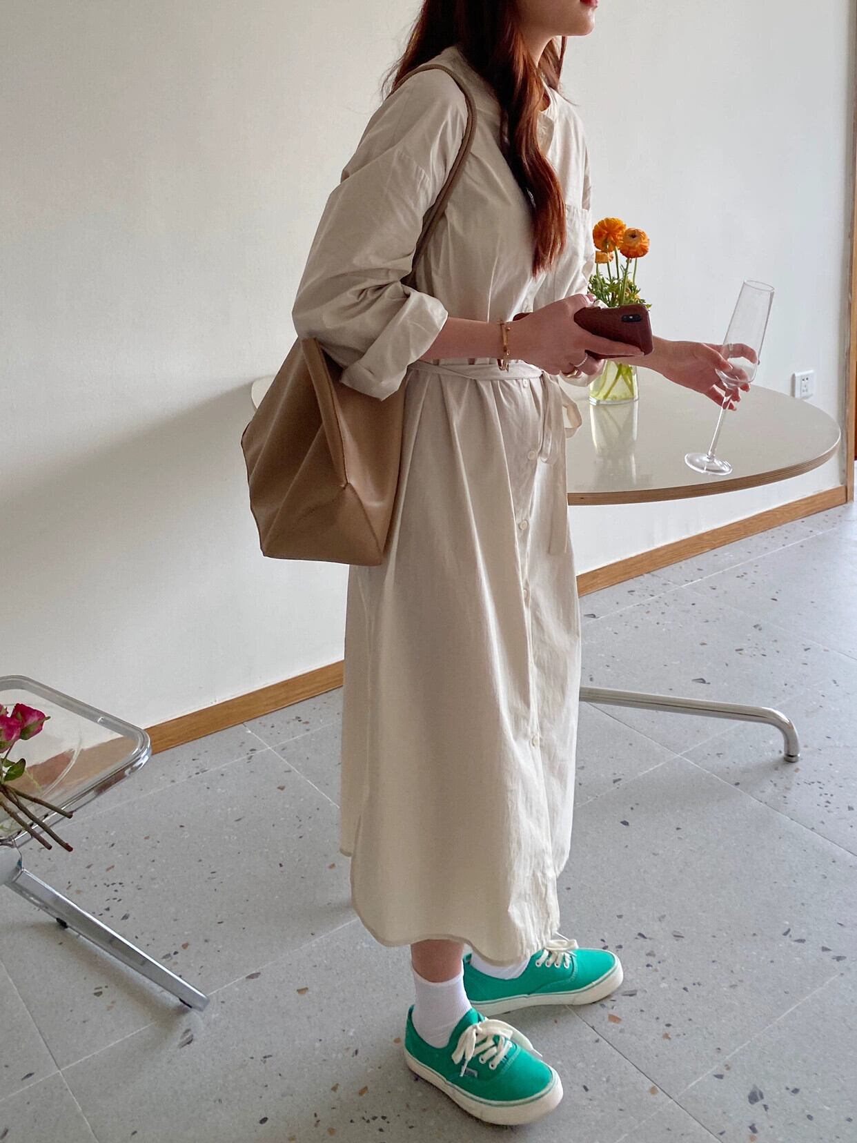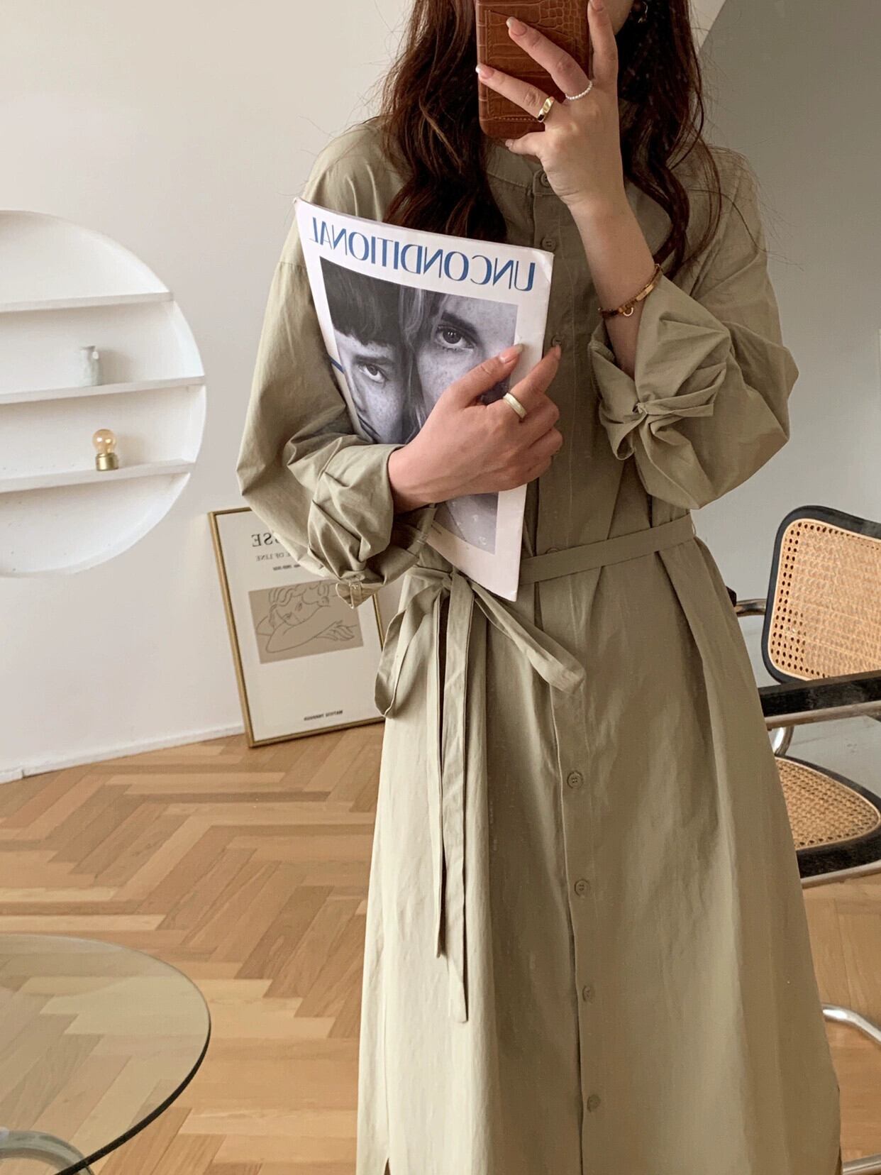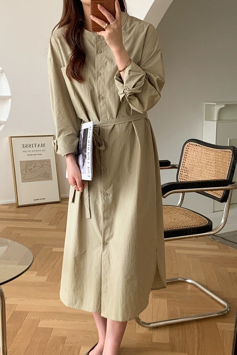 東大門の永貿易バージョン春と秋の文学的な気質ルーズスリムネクタイウエスト無地シングルブレストドレスの女性 スプリング 春物 オータム 秋物 ソリッドカラー cat820352119135