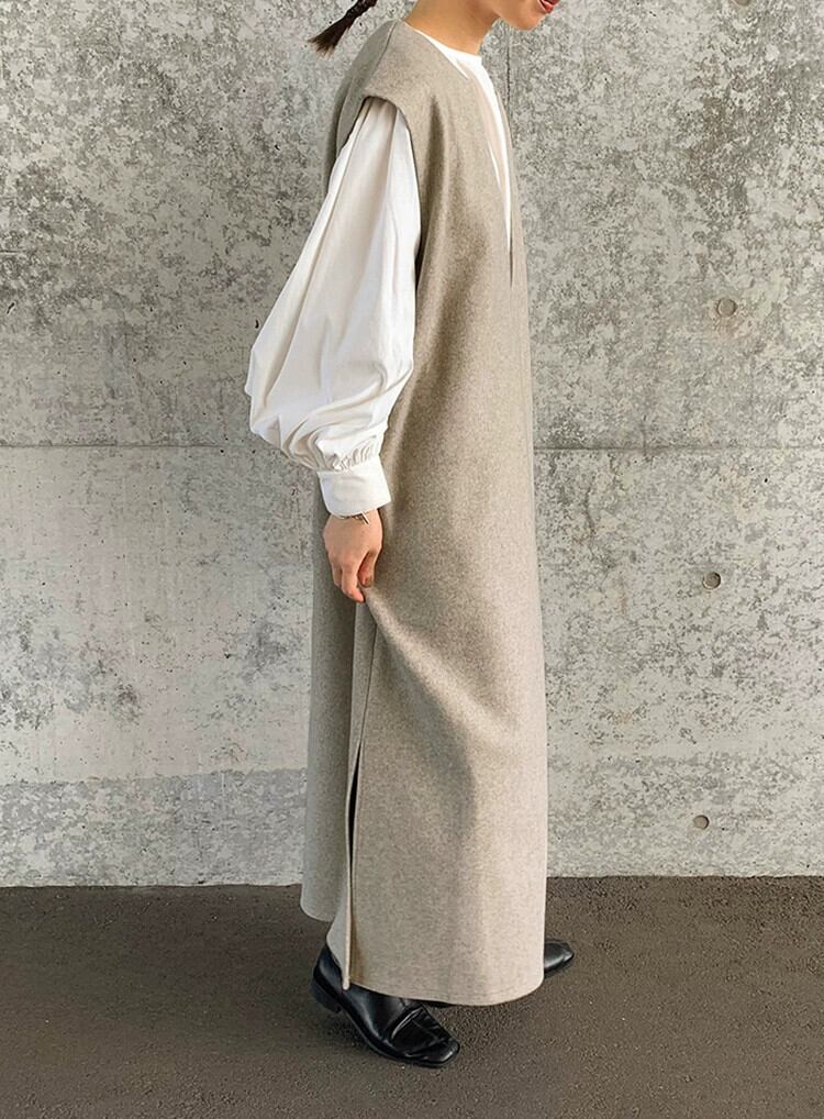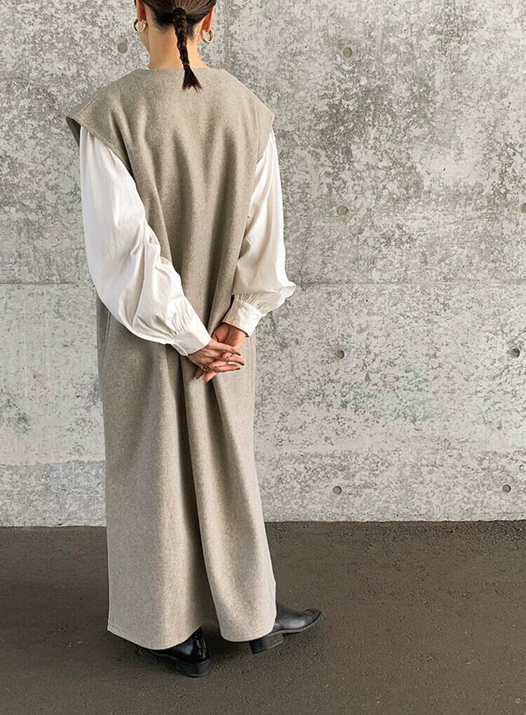 アマゾン越境と南の秋冬新作ルーズノースリーブワンピース、Vネックベスト付き膝丈ロングコート オータム 秋物 ウィンター 冬物 cat81385193525