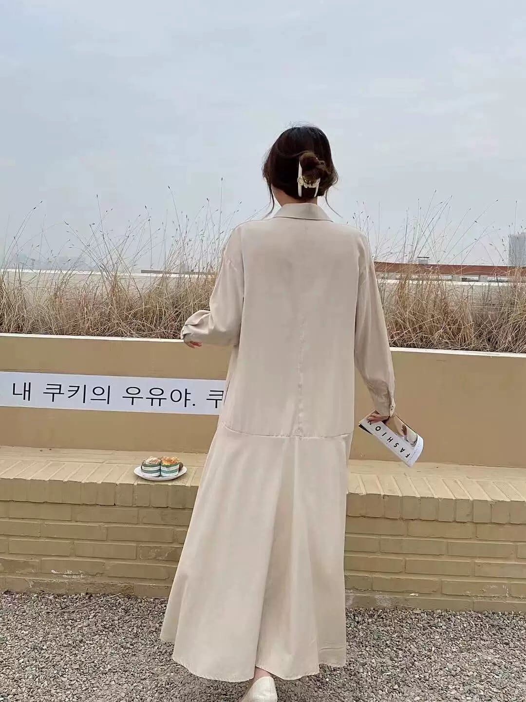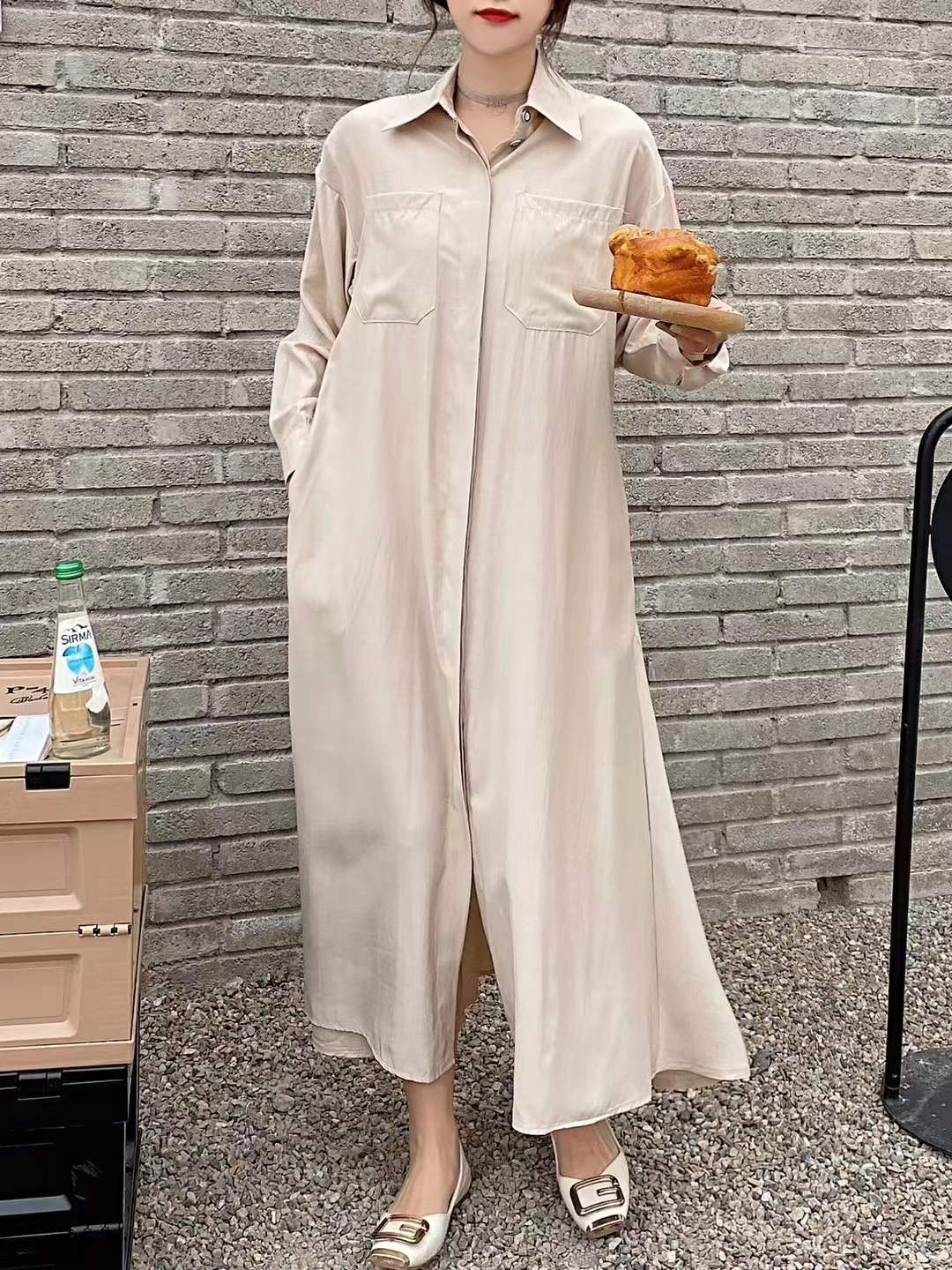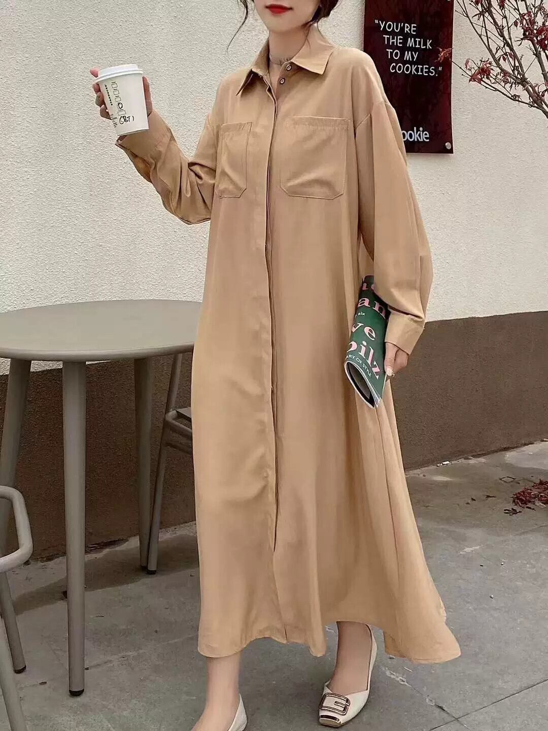 eign trade ese とバージョン春と秋の新しいルーズで薄い膝上のロングセクション bf ウィンドカーディガンジャケットカジュアル長袖シャツスカート スプリング 春物 オータム 秋物 cat844317926201