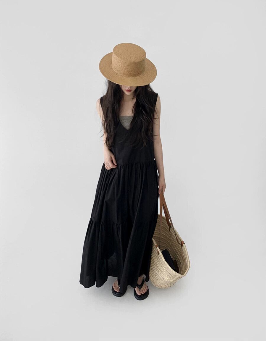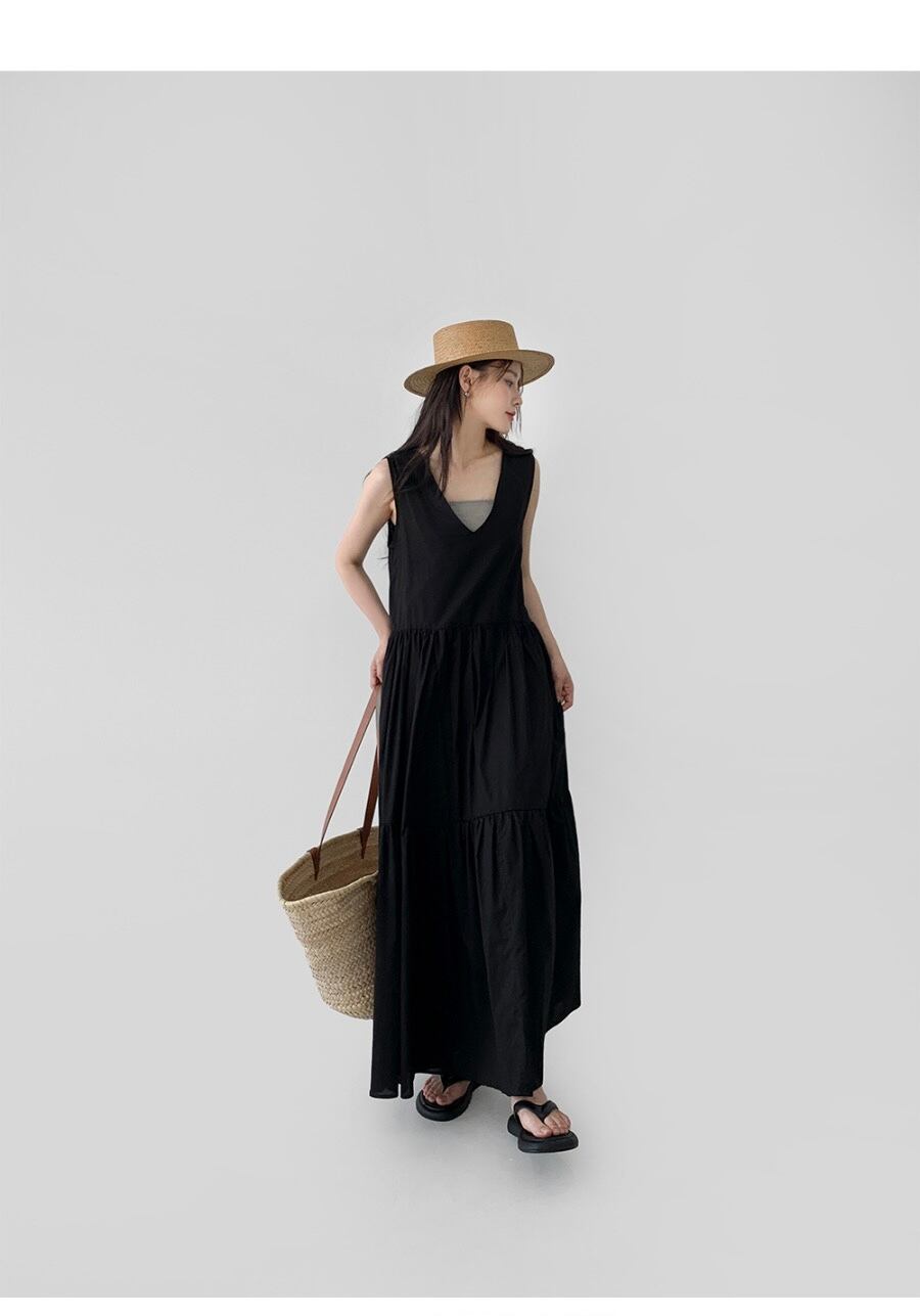 eign trade ese と気質甘いベストドレスホリデー風ルーズノースリーブ V ネックロングドレス人形スカート 大人ガーリー スウィート キュート カジュアル Vネック cat844432777230