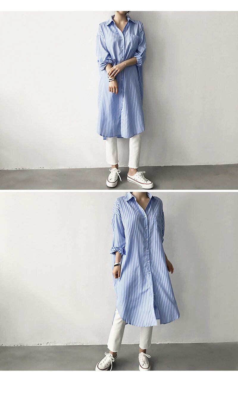 eign trade バージョン初秋怠惰な冷たい風ミディアムロングストライプシャツスカート緩い大きいサイズオールマッチカジュアルドレス 大きめサイズ オータム 秋物 cat816486406113