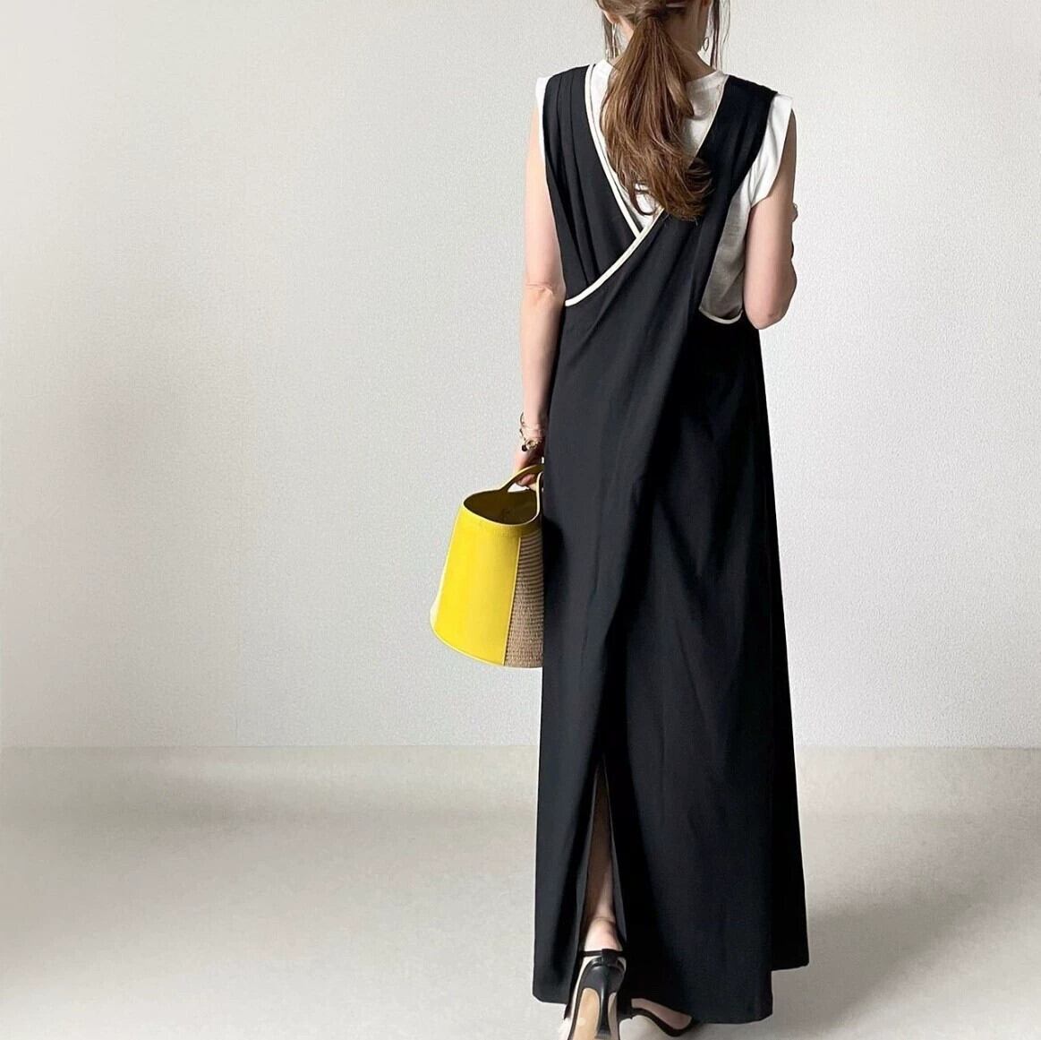 クロスボーダーベストセラー夏のサスペンダースカート 2022 夏新作 ese 痩身スカートカジュアル V ネックバックスリットドレス サマー 夏物 Vネック cat897607952168