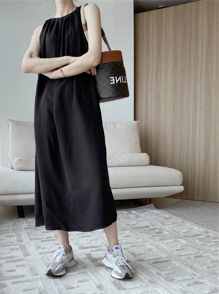クロスボーダー ese と快適で滑らかなラウンドネックプリーツノースリーブドレスの女性の夏の緩い大きいサイズの膝上ベストスカート女性 大きめサイズ サマー 夏物 Oネック cat820447264661
