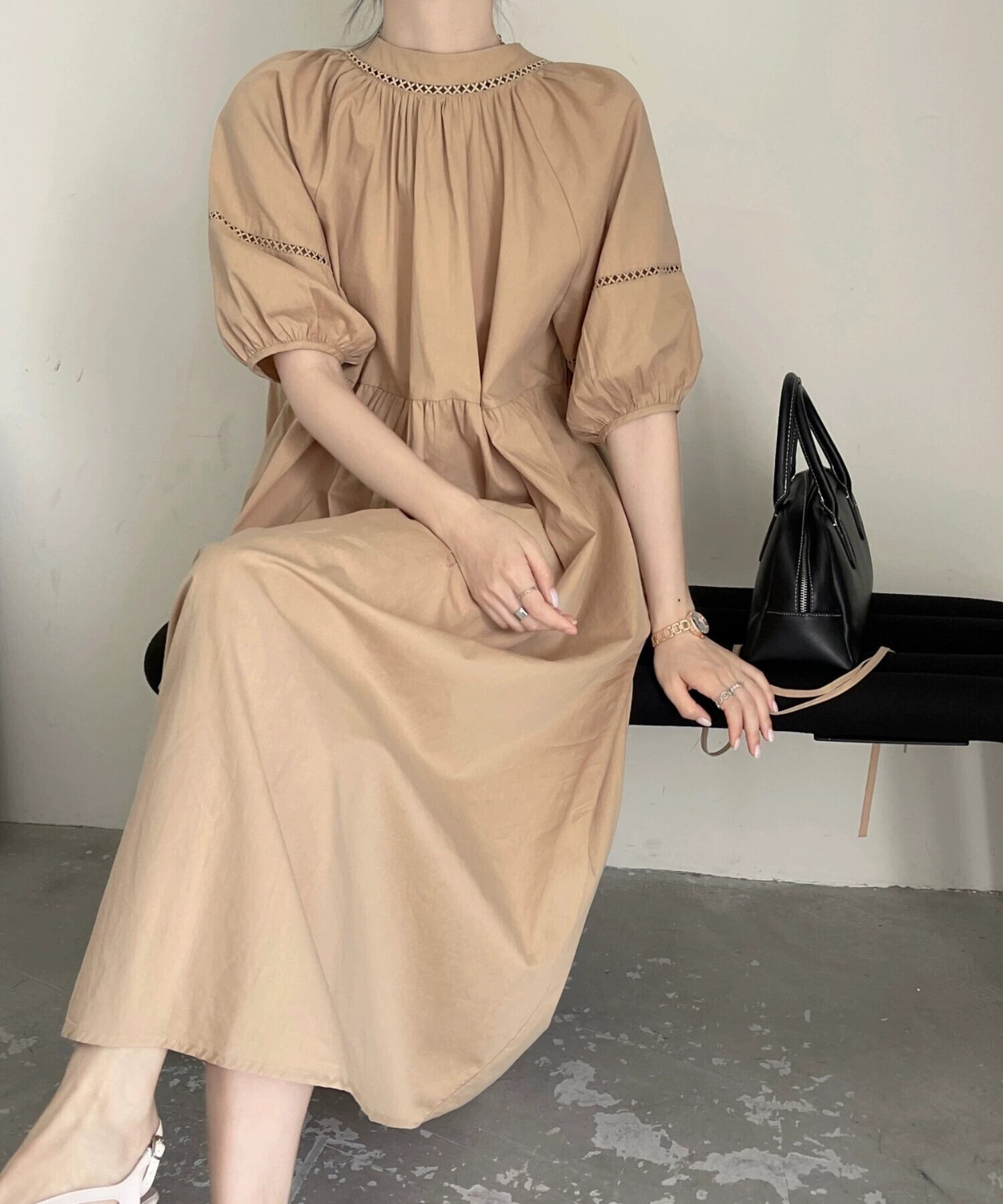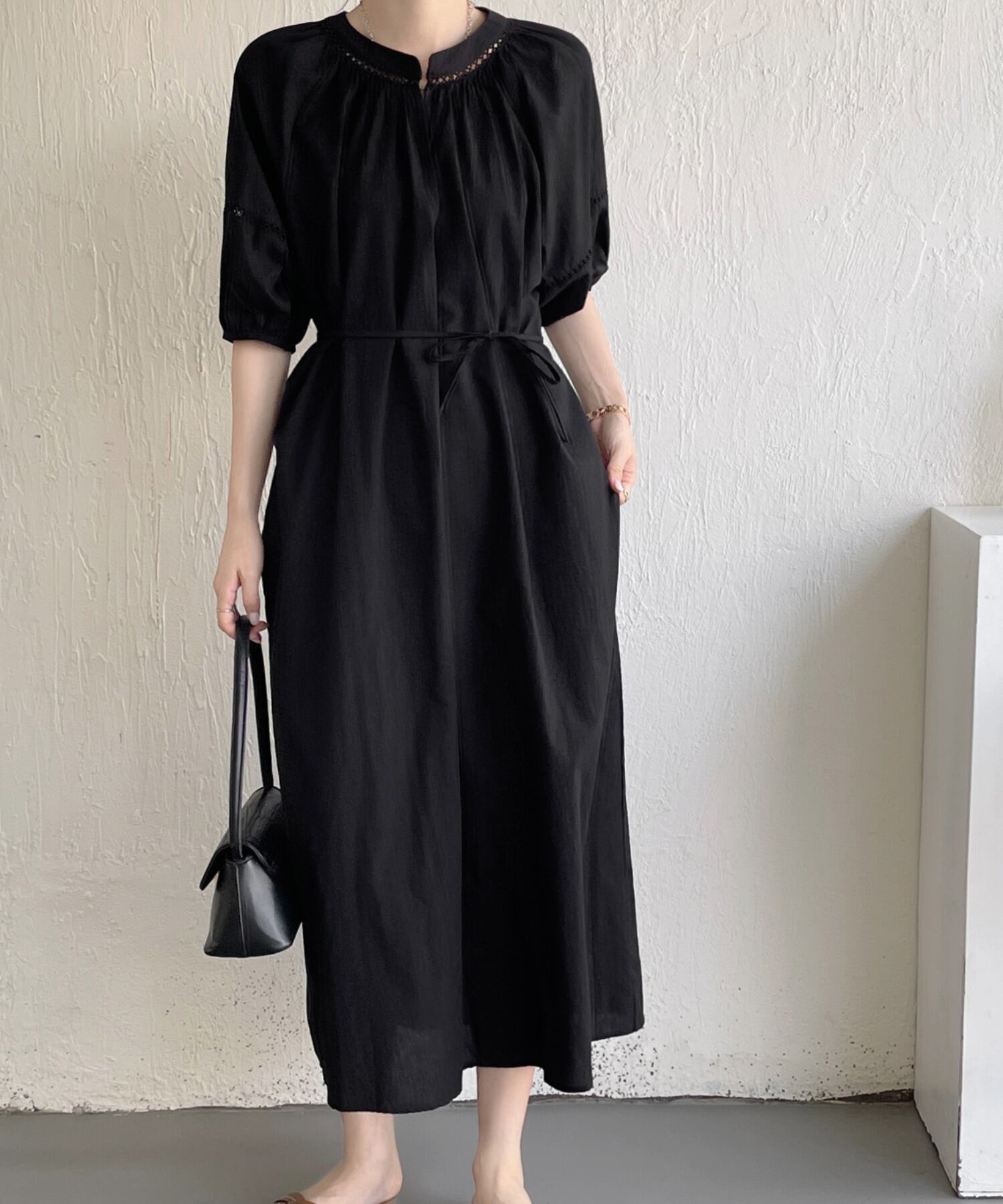 国境を越えたeign tradeの女性用ミニマリスト、怠惰でゆったりとした薄手の半袖ホリデースタイルVネックロング膝丈ドレス cat844017346855