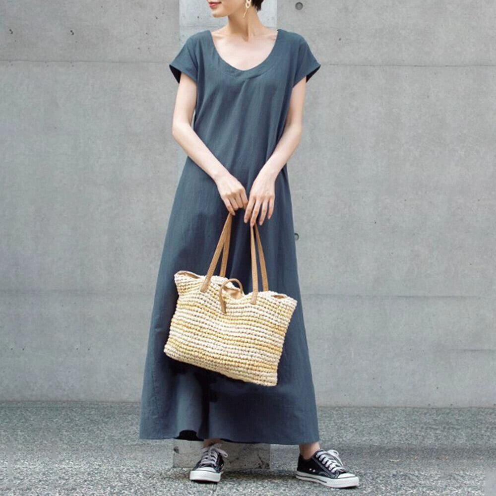 国境を越えたeign trade eseスタイルの緩い大きいサイズのデザインセンスストラップ半袖コットンドレスレトロライト成熟した足首までの長さのスカート女性 大きめサイズ cat83737041375