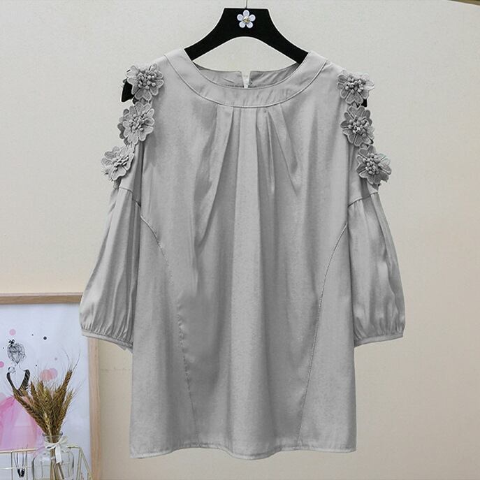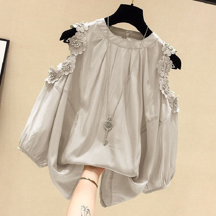 甘い花オフショルダーシフォンシャツ女性 2022 春夏新バージョンゆったり大きいサイズ半袖トップスお腹カバー 大きめサイズ 大人ガーリー スウィート キュート カジュアル スプリング 春物 サマー 夏物 フラワーデザイン cat895672339760