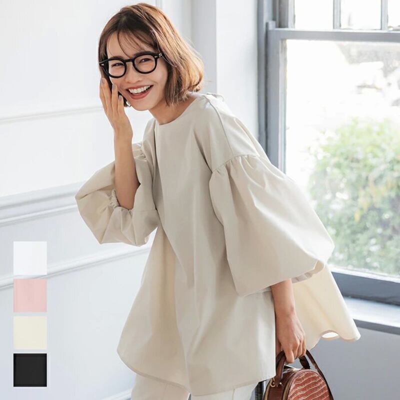 越境エセと春夏の新作ルーズシャツレディース大きいバージョンパフスリーブレディースプルオーバーラウンドネックドールシャツトップ スプリング 春物 サマー 夏物 Oネック cat811367263125
