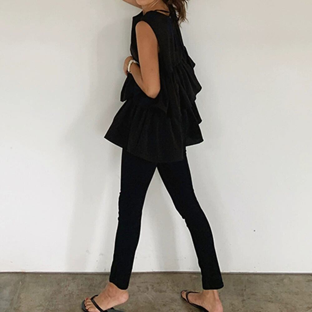 クロスボーダー ese とストリートカジュアル気質ノースリーブトップ女性の 2022 夏のフリルラウンドネックファッション通勤シャツ サマー 夏物 Oネック cat81172757835