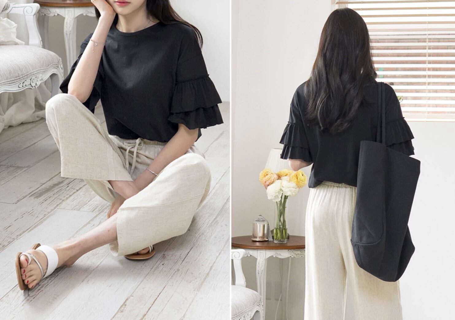 ese and style ins レディース ロッテ クロスボーダー スタイル トップス 半袖 ルーズ フリル袖 ドロップショルダー 新しいスタイル cat881509103086