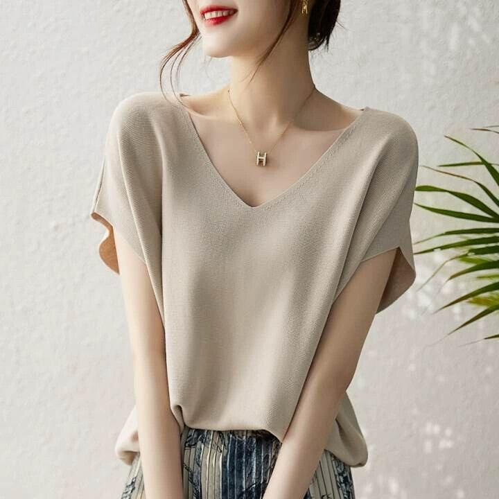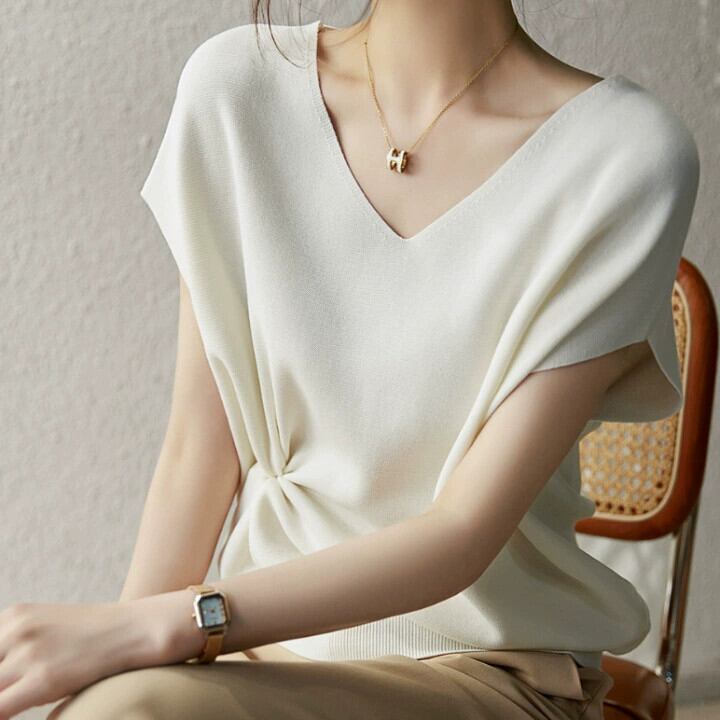 越境 ese と夏の新しいドライアセテート綿バットスリーブ薄いセクションアイスシルクファッションスリムで薄い eign スタイルのセーター コットン サマー 夏物 cat888445325327