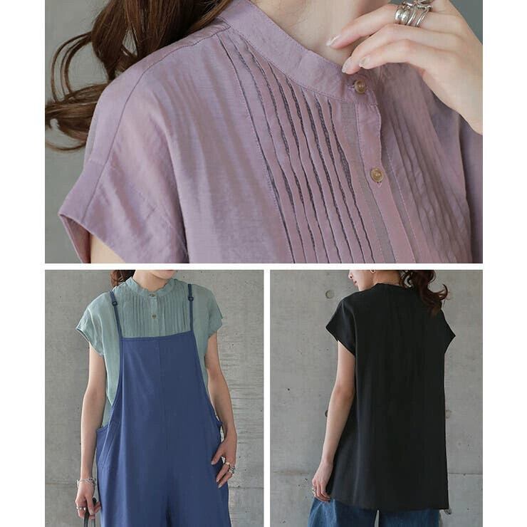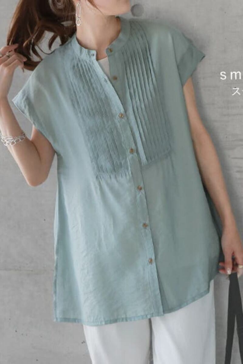 ese 新しいレトロスタンドカラーシャツ文学ステッチ甘いアコーディオンプリーツ半袖シャツ女性の緩い気質トップ 大人ガーリー スウィート キュート カジュアル cat895534264902