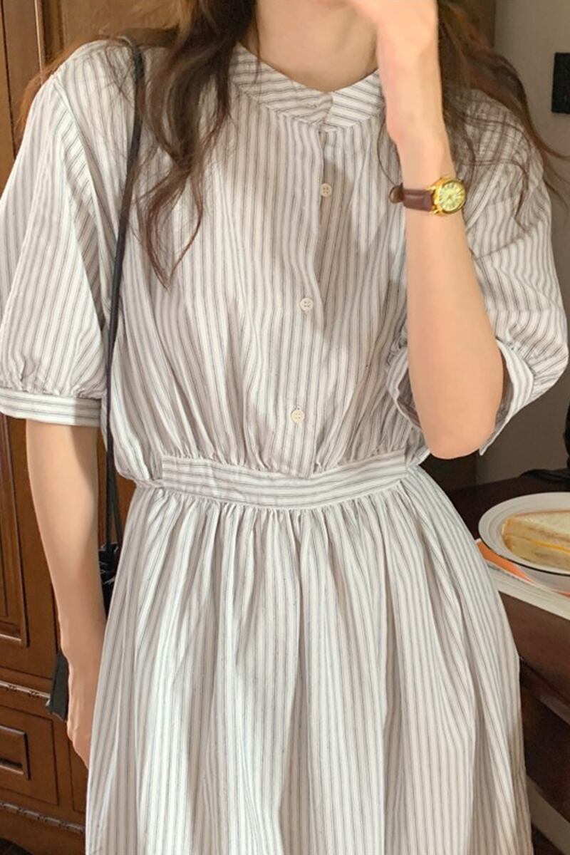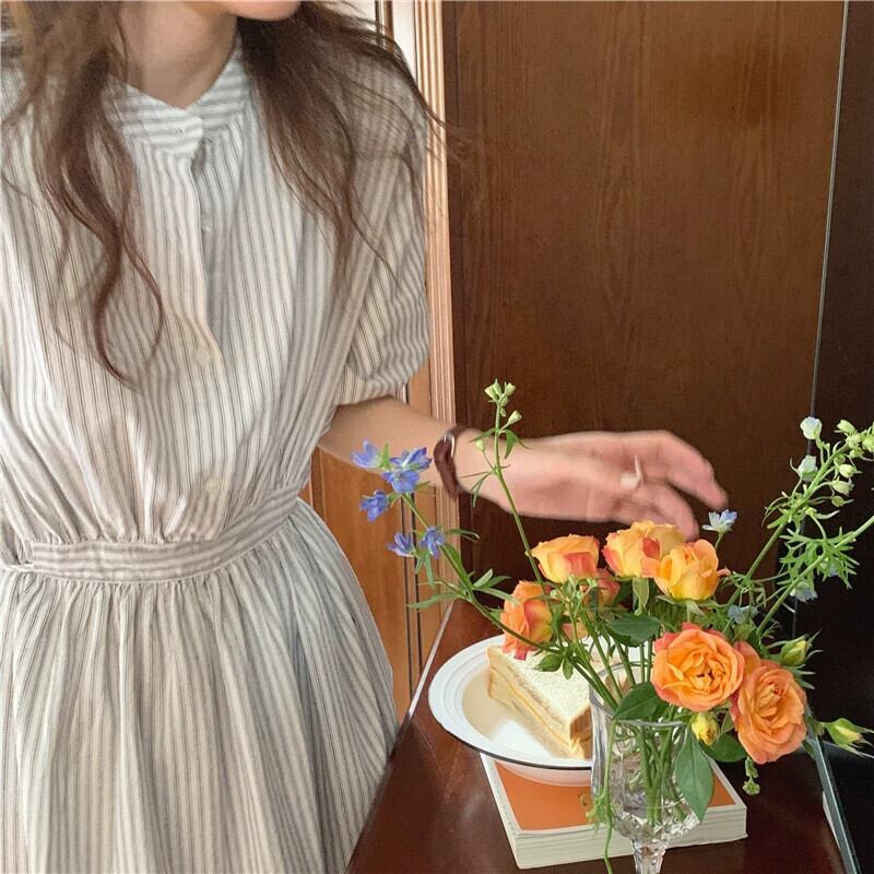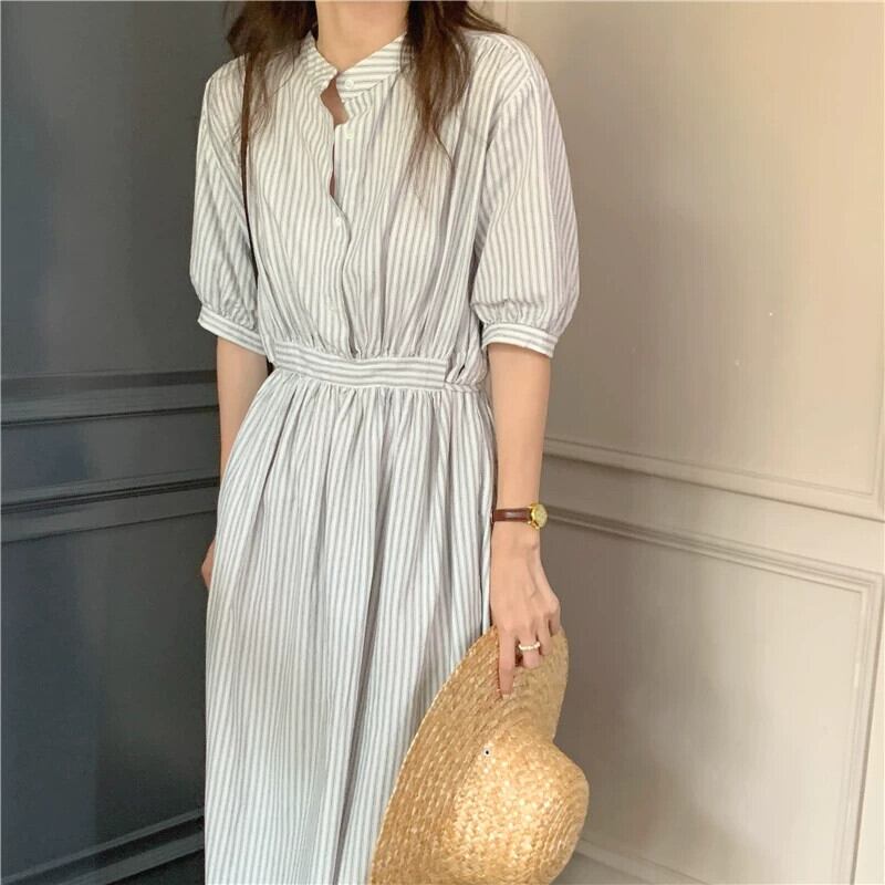 シンプルなオールマッチストライプシャツスカートのバージョンの女性の夏の新しいルーズスリムウエストタイドレスミッドレングススカート サマー 夏物 cat874049988955