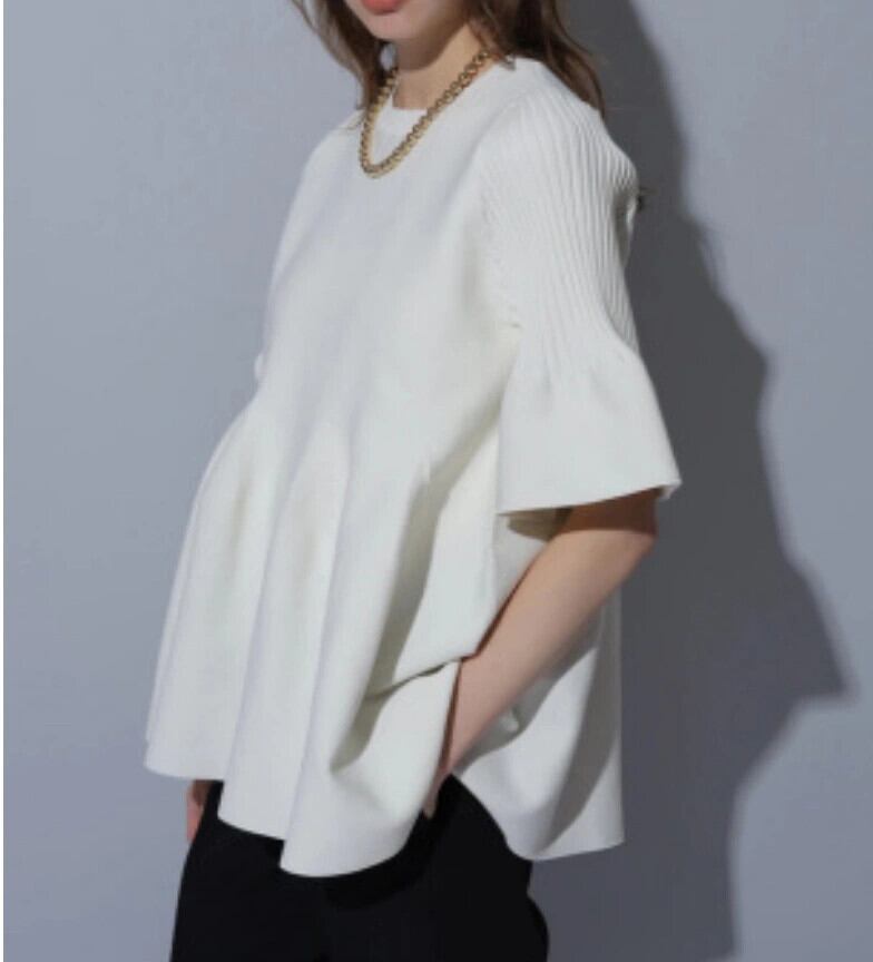 2023年夏新作ベルスリーブルーズ無地半袖ニットTシャツ サマー 夏物 ソリッドカラー cat876380535092