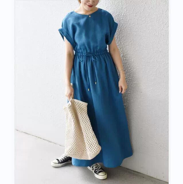 クロスボーダー ese スタイルの甘い気質巾着ウエストリネンドレスレディース夏の新しい緩くて薄い膝上ドレス 大人ガーリー スウィート キュート カジュアル サマー 夏物 cat85203291714