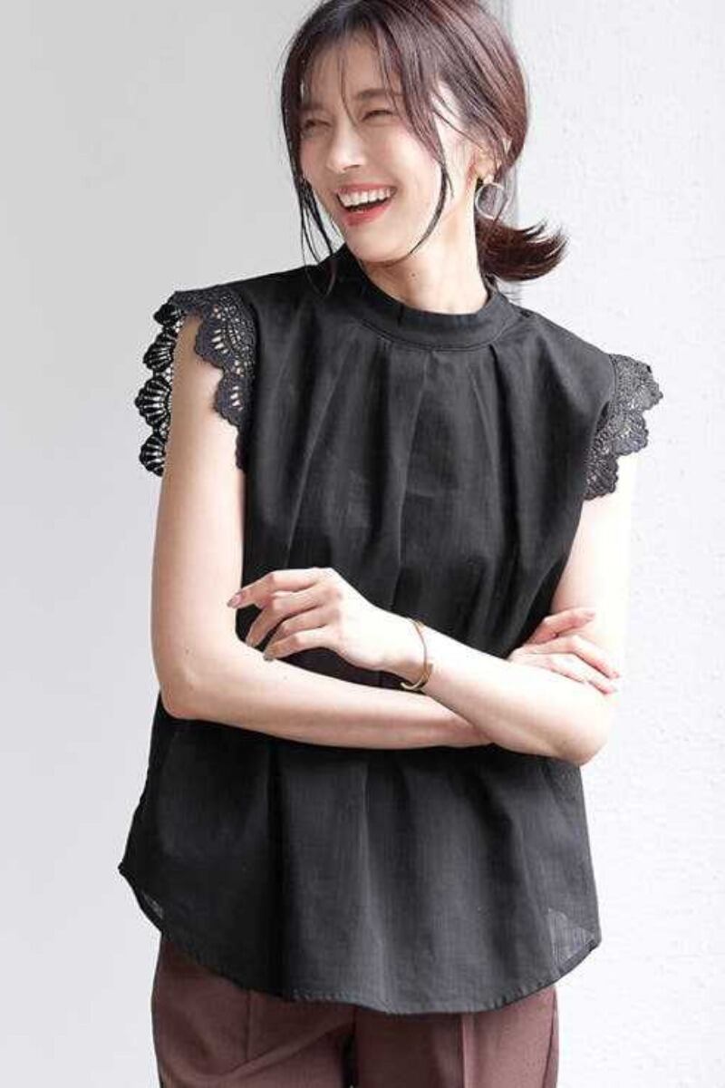 クロスボーダー春と夏の新しい ese シャツフリルレーススリーブニッチラウンドネックデザインシックなノースリーブトップ女性 スプリング 春物 サマー 夏物 Oネック cat873005531631