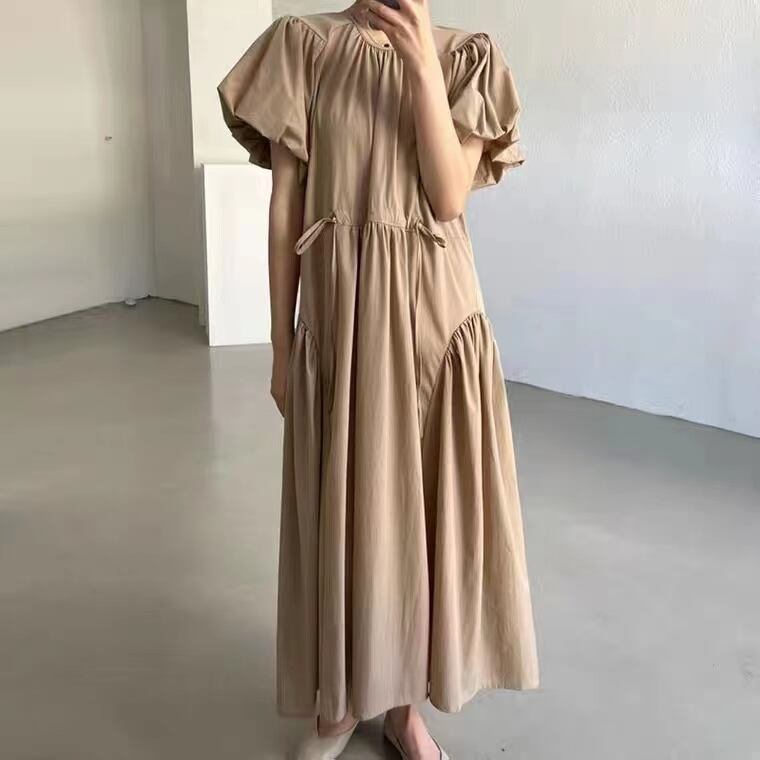 eign trade ゆったり大きいサイズ文学芸術レトロデザインパフスリーブシンプルファッションロングドレスロングスカート 大きめサイズ cat84016090115