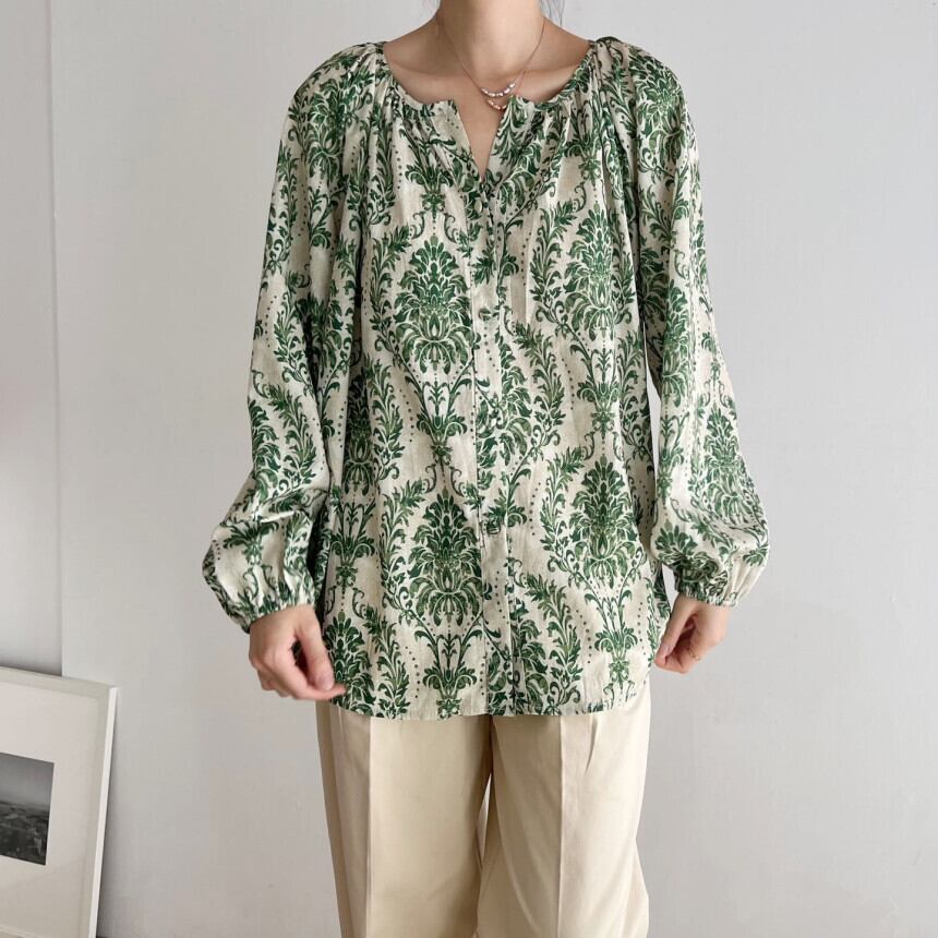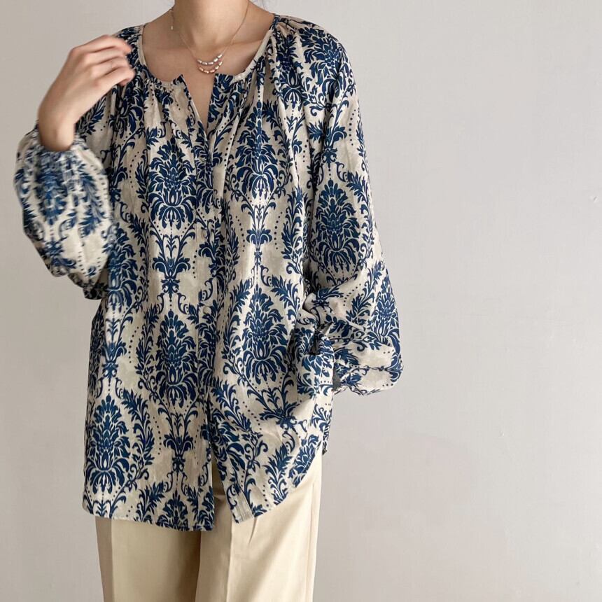 リアル s バージョンの春と夏の新しい薄いセクション レトロ スリム花柄ルーズ コットン リネン シャツ プラス サイズの女性のトップ 大きめサイズ スプリング 春物 サマー 夏物 cat83304826500