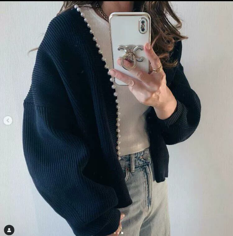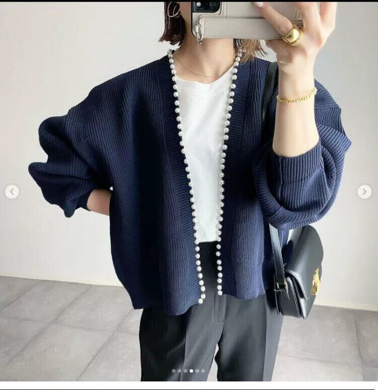 国境を越えたeign trade 2022新しい春と秋のニットVネックカーディガンパールセーター、ショートルーズトップ付き スプリング 春物 オータム 秋物 真珠 cat8241299256