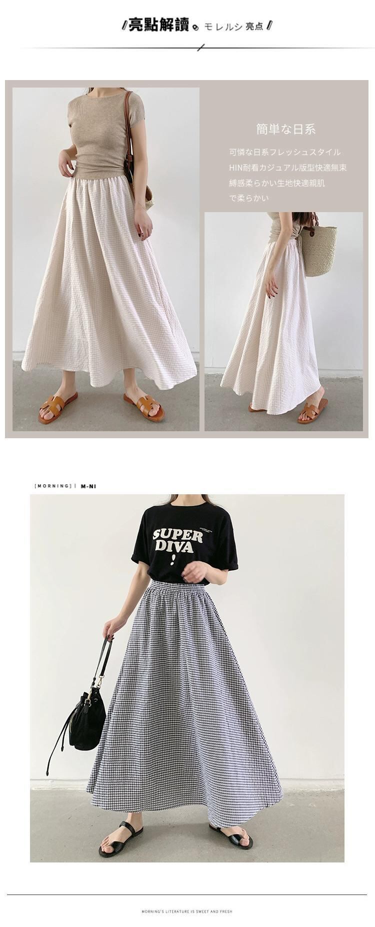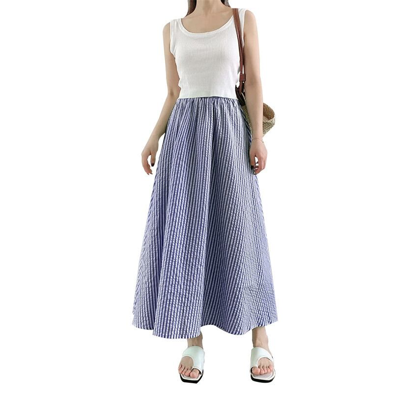 本物の ese 2023 夏ロッテゴムウエストチェック柄スカート A ラインスカートレディース エラスティック 伸縮 サマー 夏物 Aライン cat821950267831