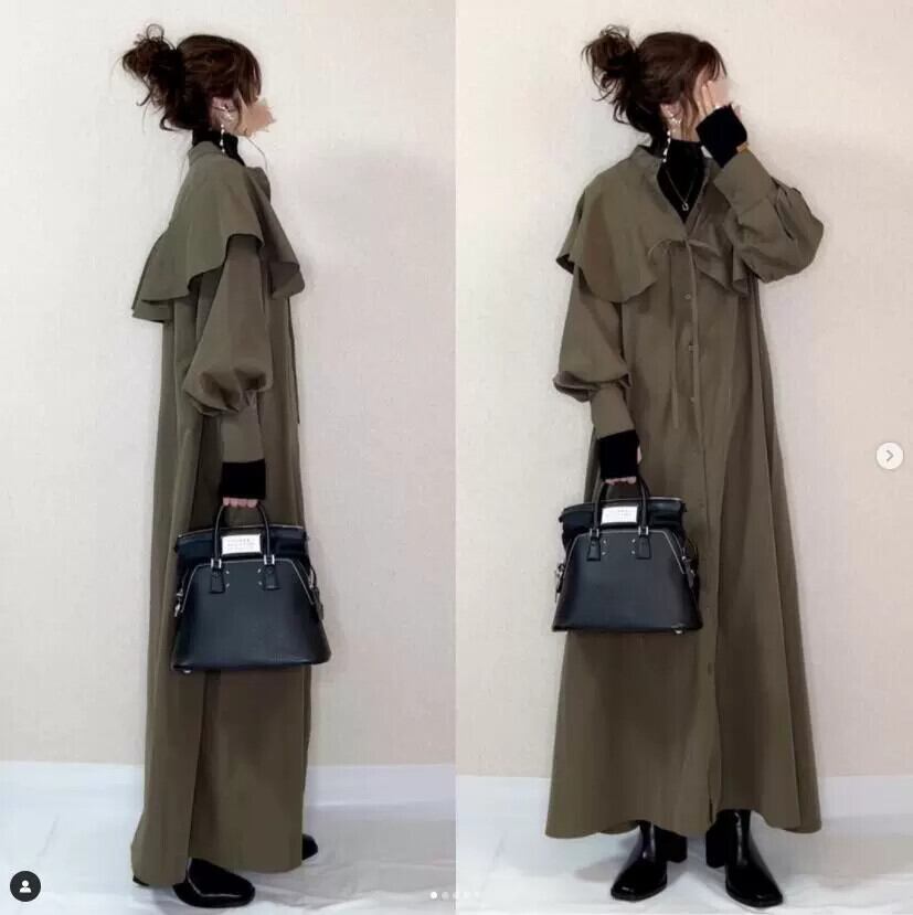 国境を越えたeign trade ese春と秋の新しい無地ネクタイシングルブレストケープスタイル長袖シャツドレスロングウインドブレーカー女性 スプリング 春物 オータム 秋物 ソリッドカラー cat864003539843