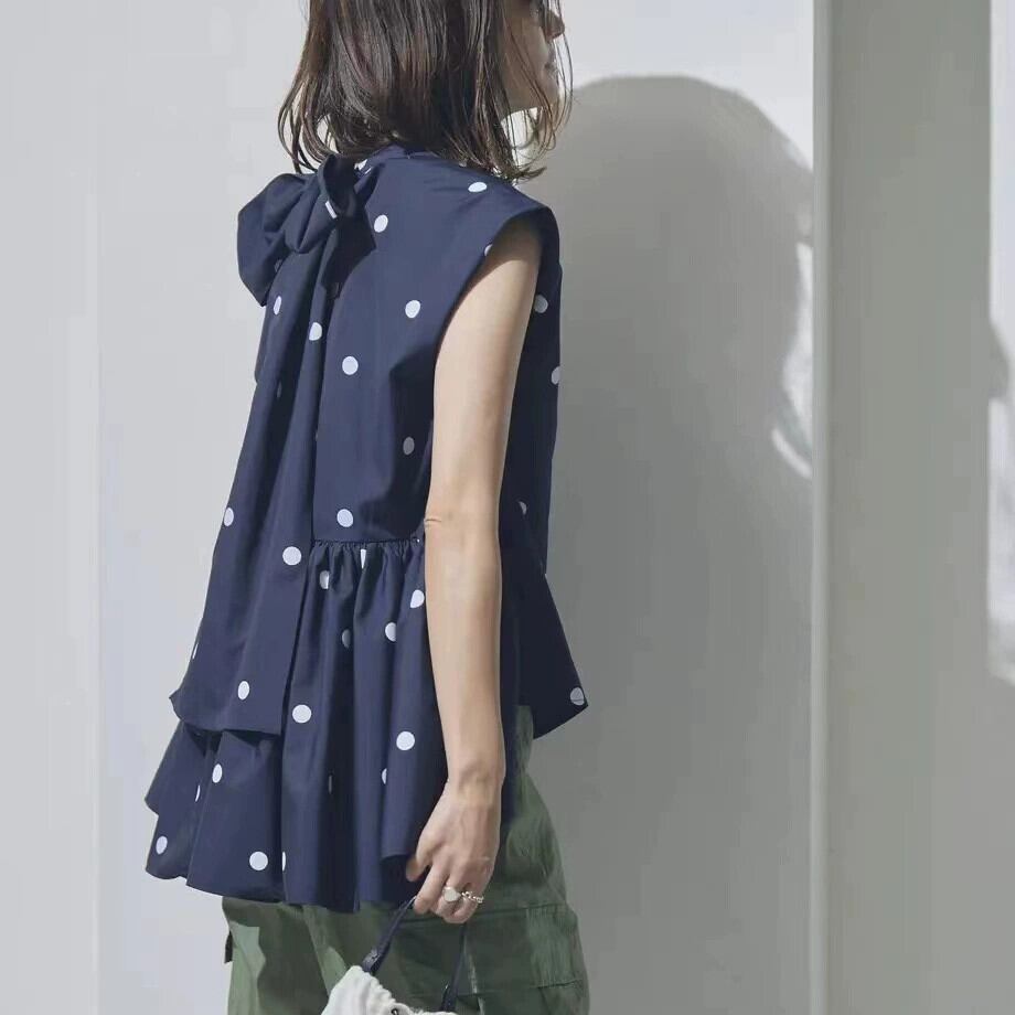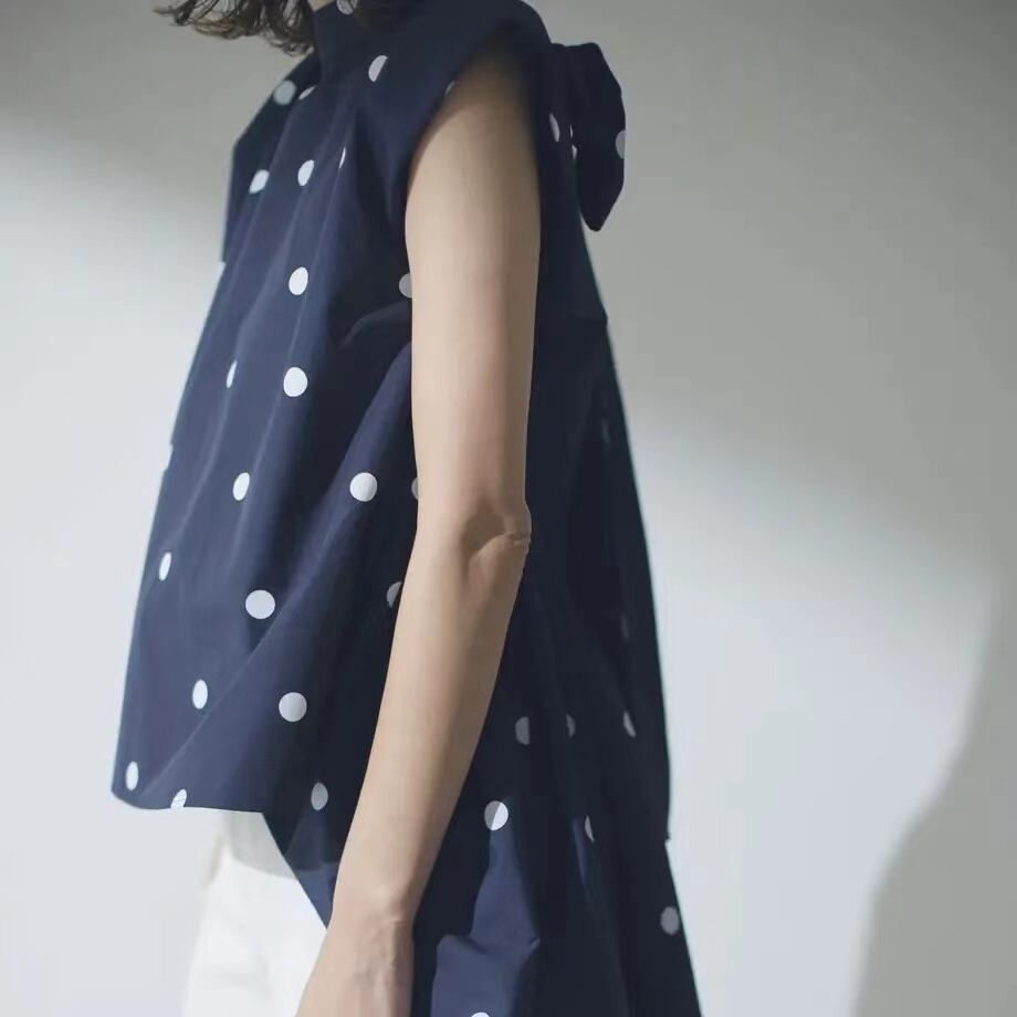 2023 新しい ese スタイル水玉模様の前後不規則なバック蝶ネクタイ半袖シャツ リボン cat843422555389
