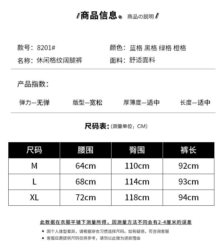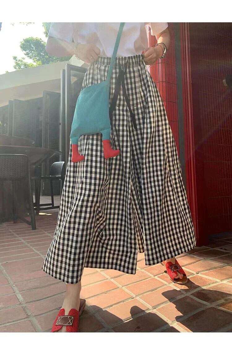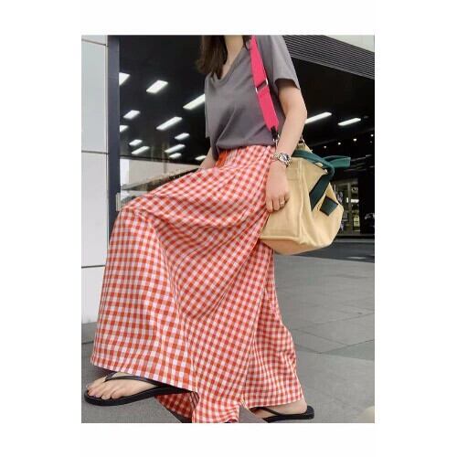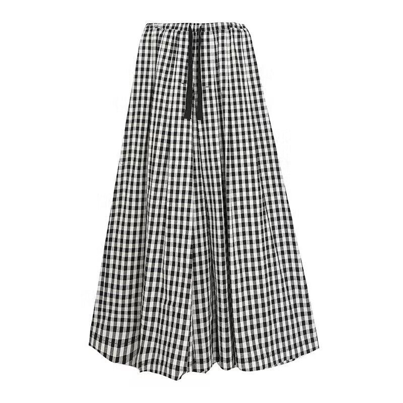 クロスボーダー ese スタイル 2023 夏の新しい女性のルーズチェック柄スカート弾性ウエスト大スイングキュロットカジュアルパンツ エラスティック 伸縮 サマー 夏物 cat819874309239