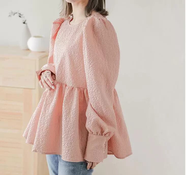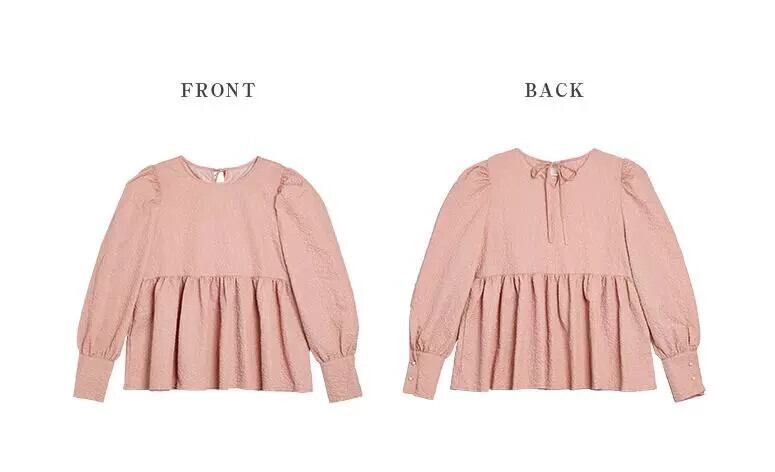 クロスボーダー楽天無地ラウンドネックトップスレディースルーズフリルシャツコート風無地プルオーバーTシャツ Oネック ソリッドカラー cat884422410453