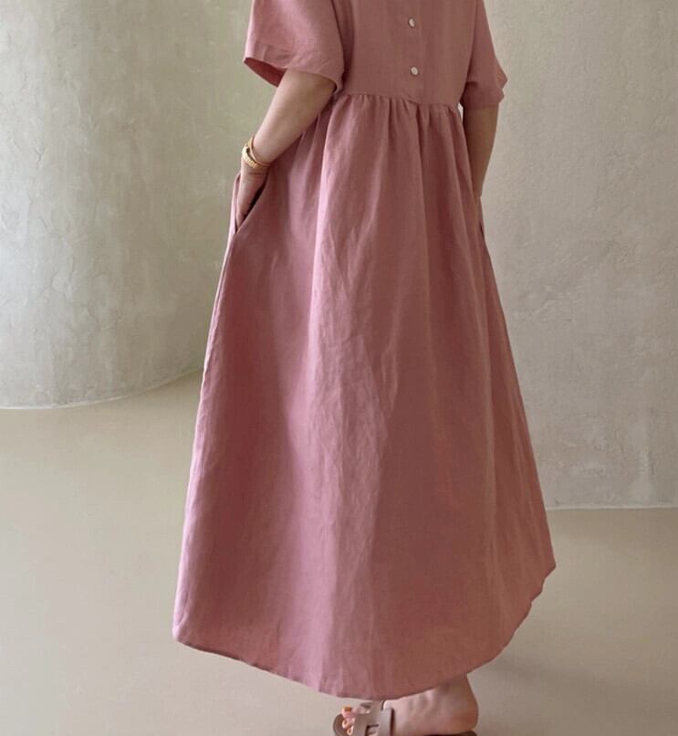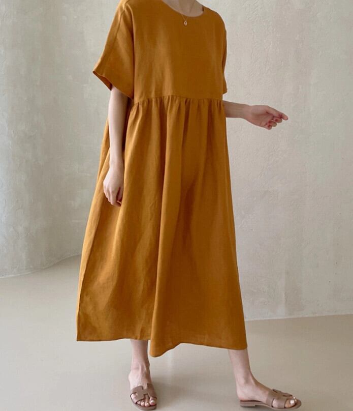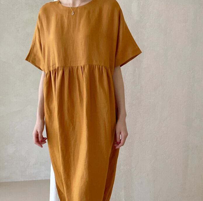 緩い大きいサイズのラウンドネック膝上のロングドールスカート半袖カジュアルオールマッチコットンドレス夏新作のバージョン 大きめサイズ サマー 夏物 Oネック cat812115376492