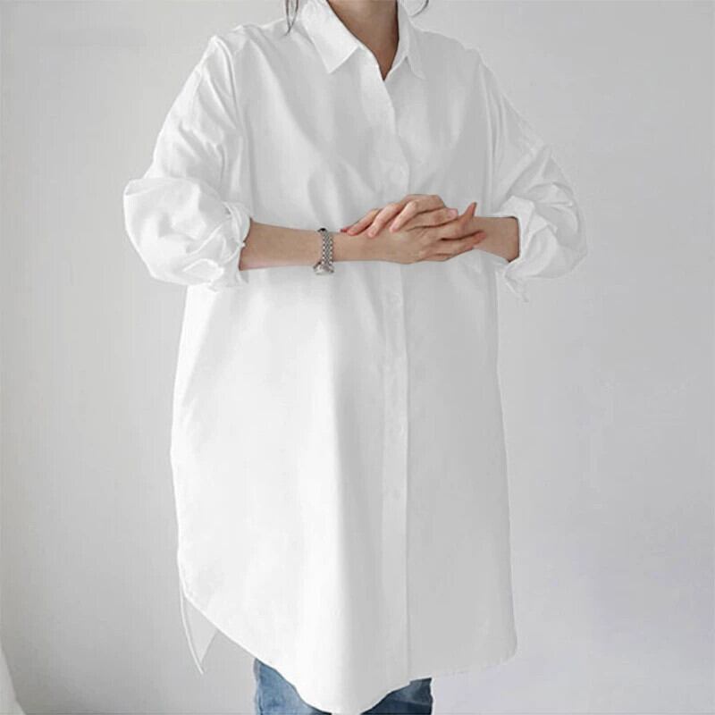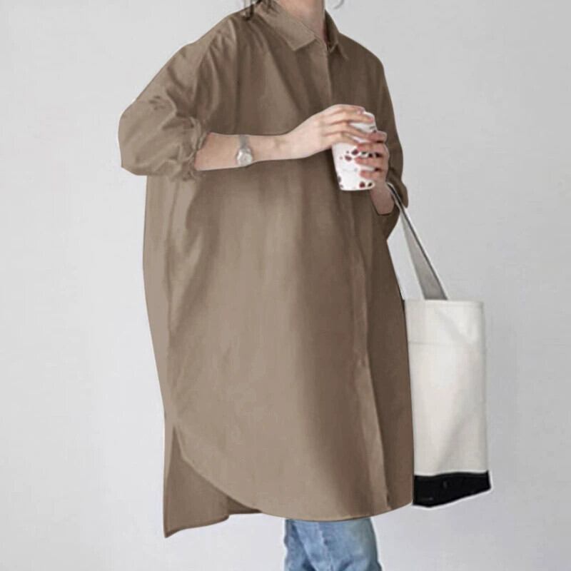 カーキバージョンルーズコットン長袖ミッドレングスカジュアルレディースシャツオールマッチシャツプラスサイズ婦人服 ロング 大きめサイズ cat877922243184