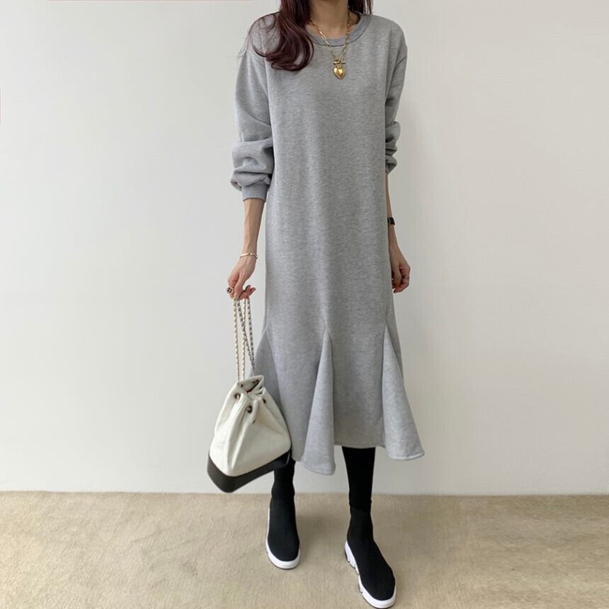 アマゾン ese と秋冬の新しい冬フリース セーター ドレス膝上ロング スカート bf ルーズ レイジー フィッシュテール スカート オータム 秋物 ウィンター 冬物 cat845404788416