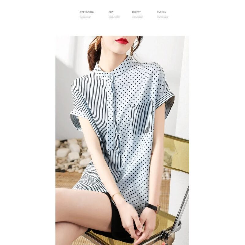 新しいデザインセンスのファッション気質シャツカジュアルルーズトップポルカドットストライプステッチ半袖シャツ女性のバージョン cat812464718508