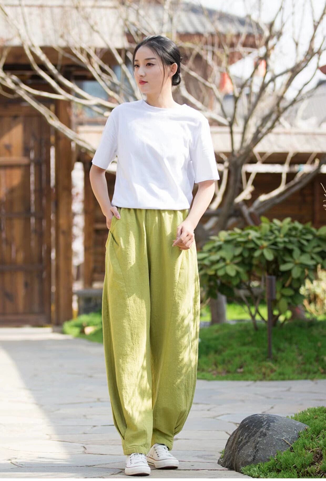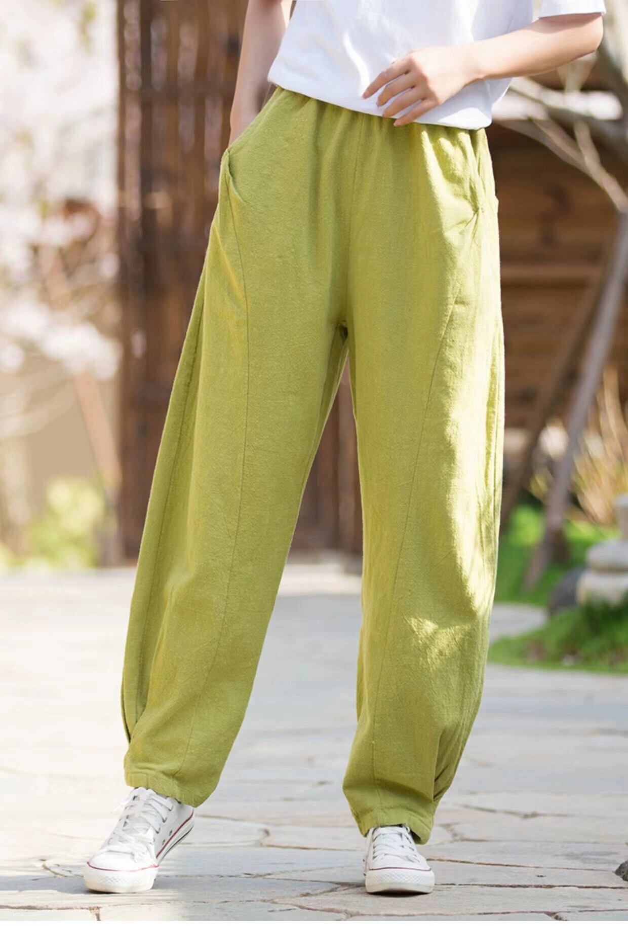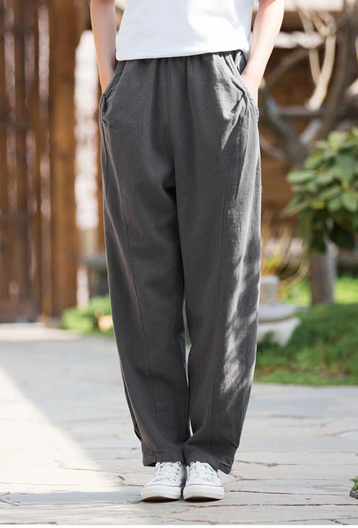 ese と綿とリネンパンツ 2023 新しいルーズ太極拳パンツプラスサイズの女性のズボンオールマッチスリムカジュアルブルマー コットン 大きめサイズ ショーツ cat824214032098