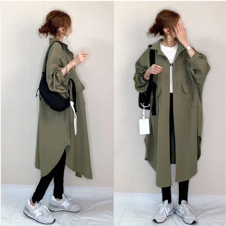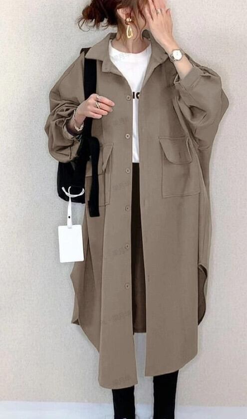越境eign trade秋と冬の新しいeseスタイル緩い大きいサイズの薄手のコートポロ襟ミドル丈カーディガンシャツ女性 大きめサイズ オータム 秋物 ウィンター 冬物 cat817332612914