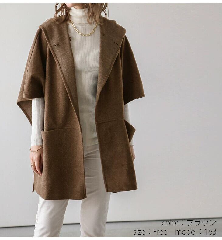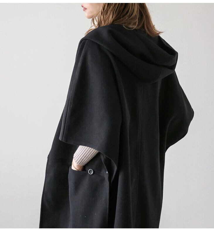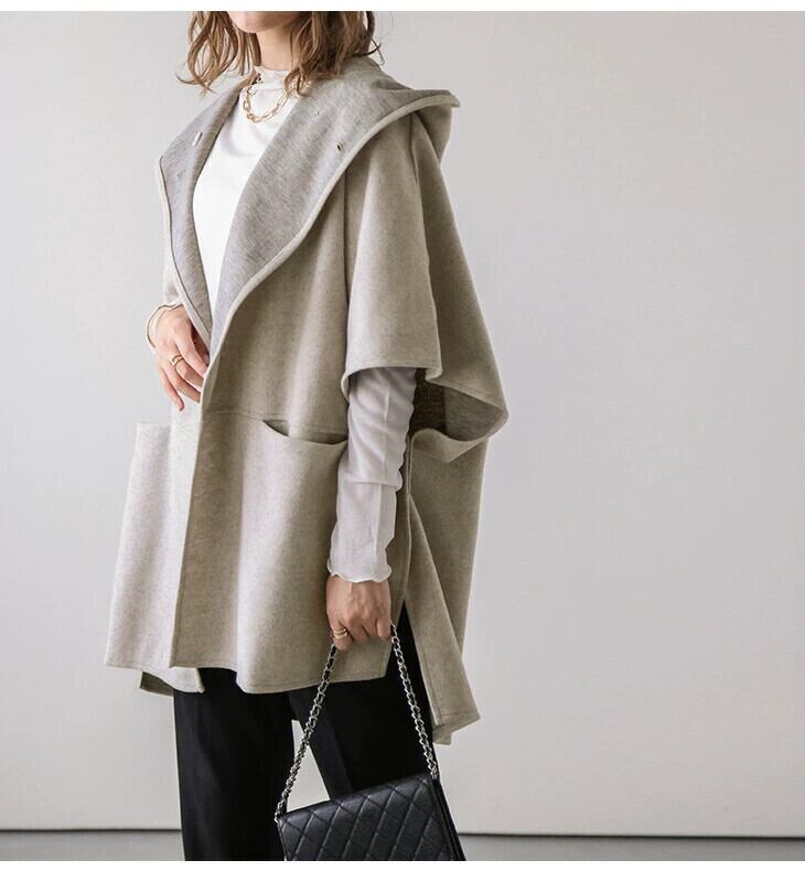 クロスボーダーアマゾン ese とシリーズ大きなラペルフード付き両面スノーフレークベルベットコート隠しバックル付きケープスタイルウールコート女性 cat858638801247