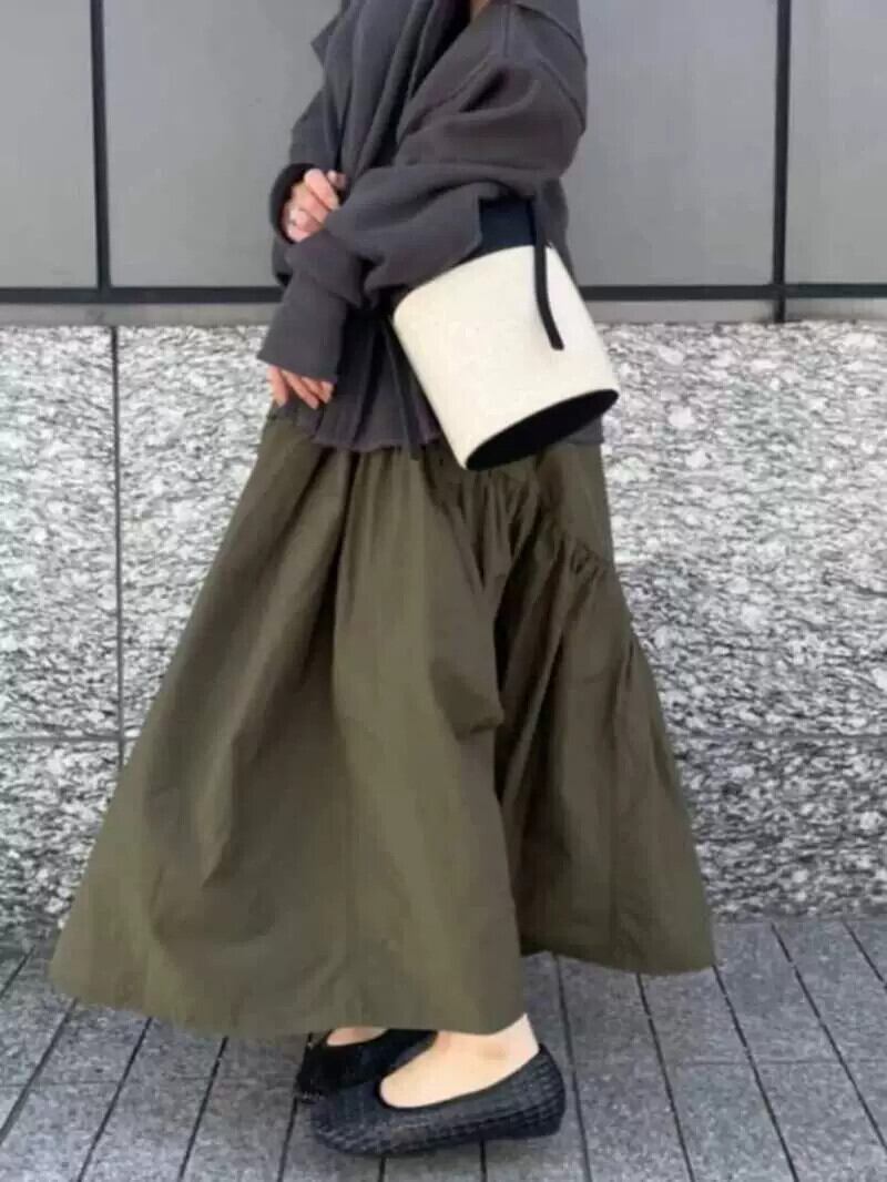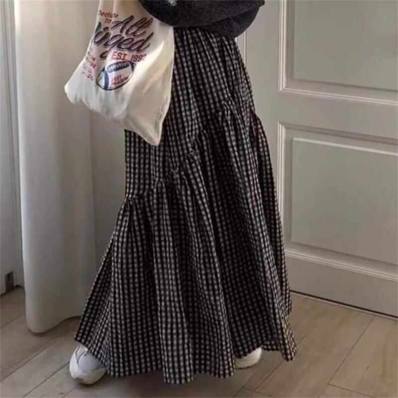 クロスボーダー ese 新しいカジュアルオールマッチレトロウェーブプリーツハイウエストスカート無地マーメイドスカートビッグスイングロングスカート ソリッドカラー cat864030807302